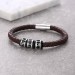 Custom Men Brown Leather Bracelet With Engraved Name Beads Father 's Day Gift Ideas