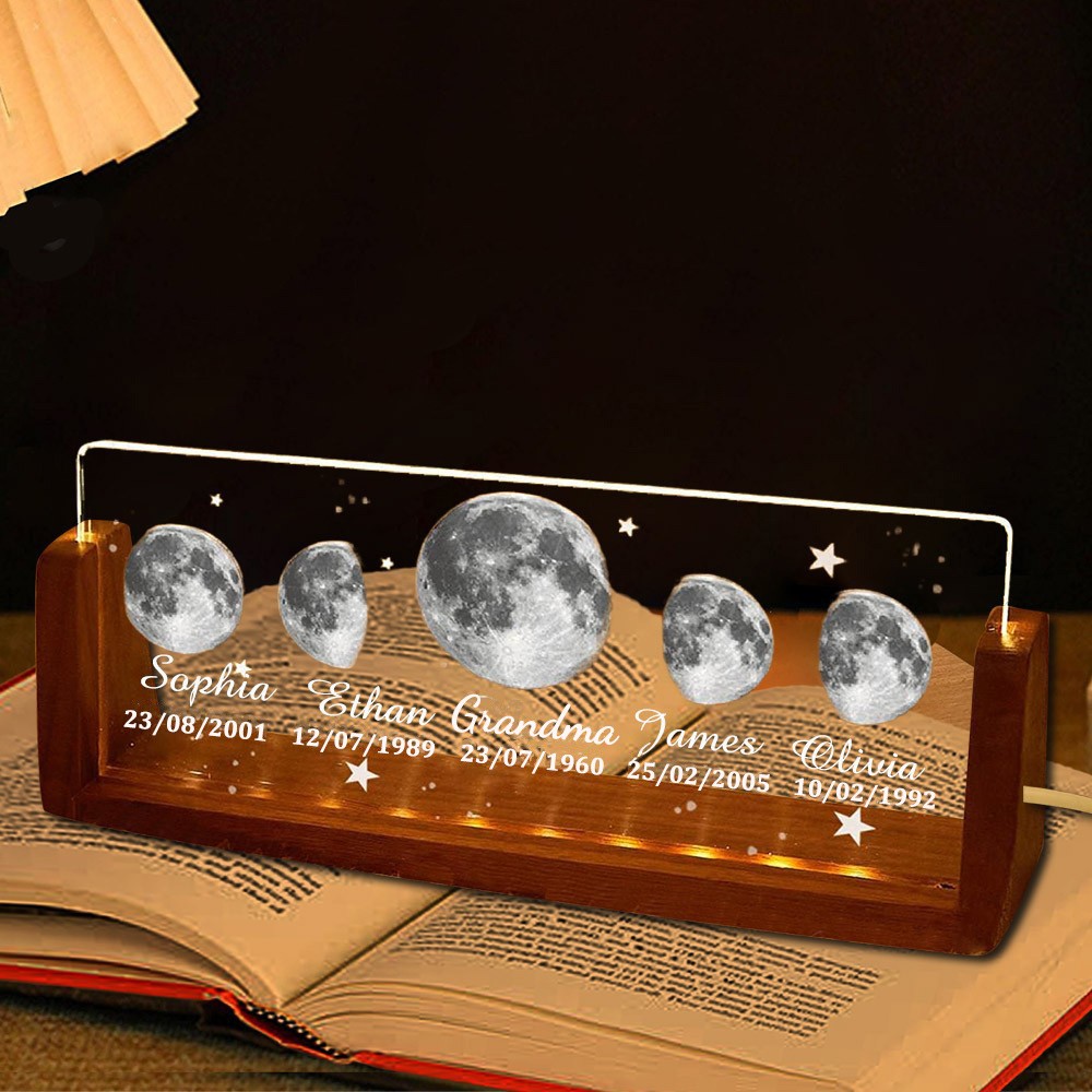 Custom Moon Phase Night Light By Date with Kids Names Gifts for Mum Nana New Mum Gift Mother's Day Gift