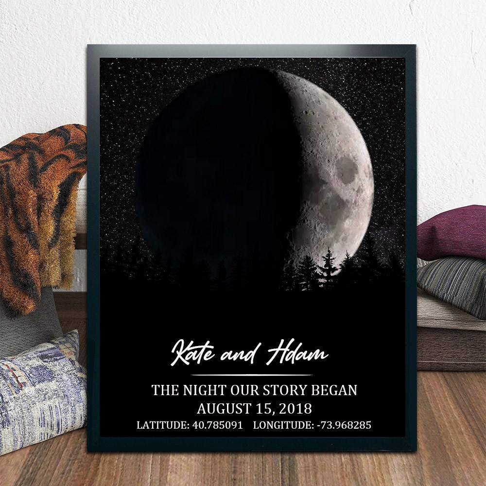 Custom Moon Phase Print Frame Keepsake Gifts for Couple Anniversary Gift Unique Valentine's Day Gifts for Him