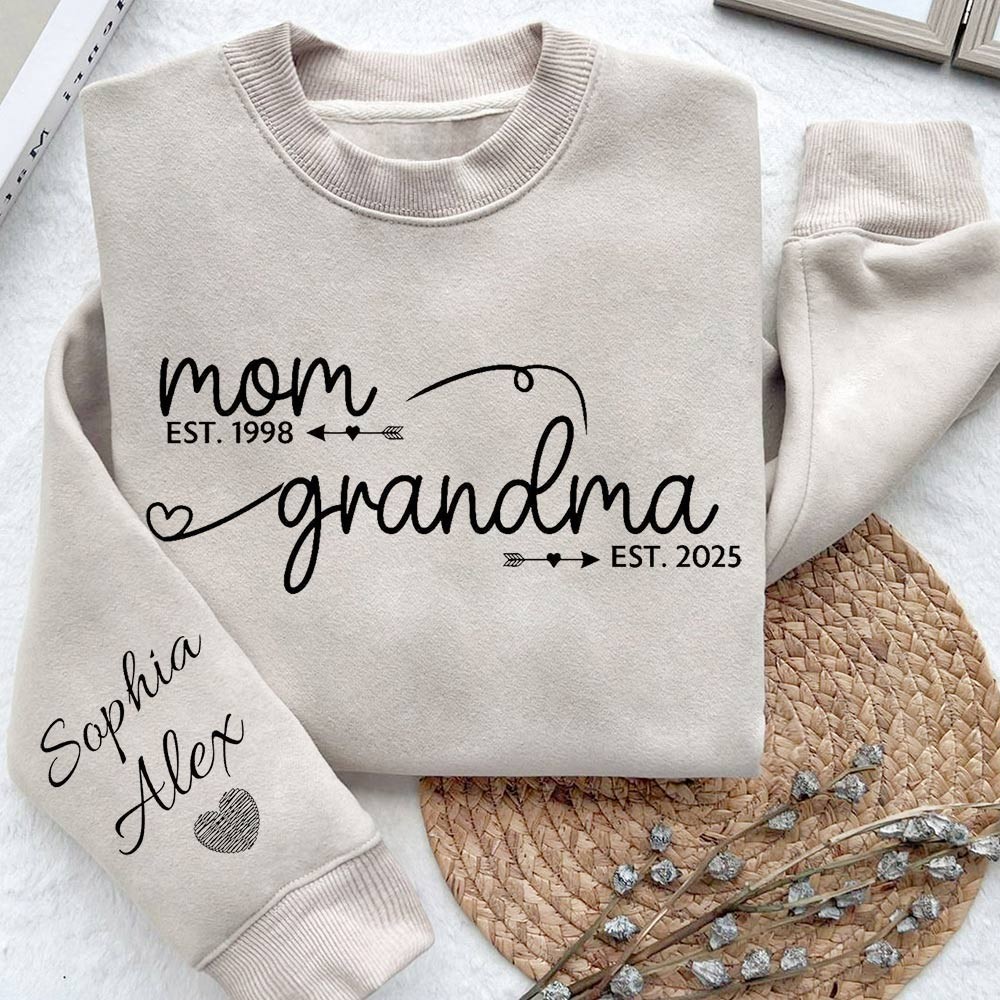 Custom Mum Grammy Est Year Sweatshirt with Kids Names on Sleeve Unique Gifts for Mum Grandma Mother's Day Gift