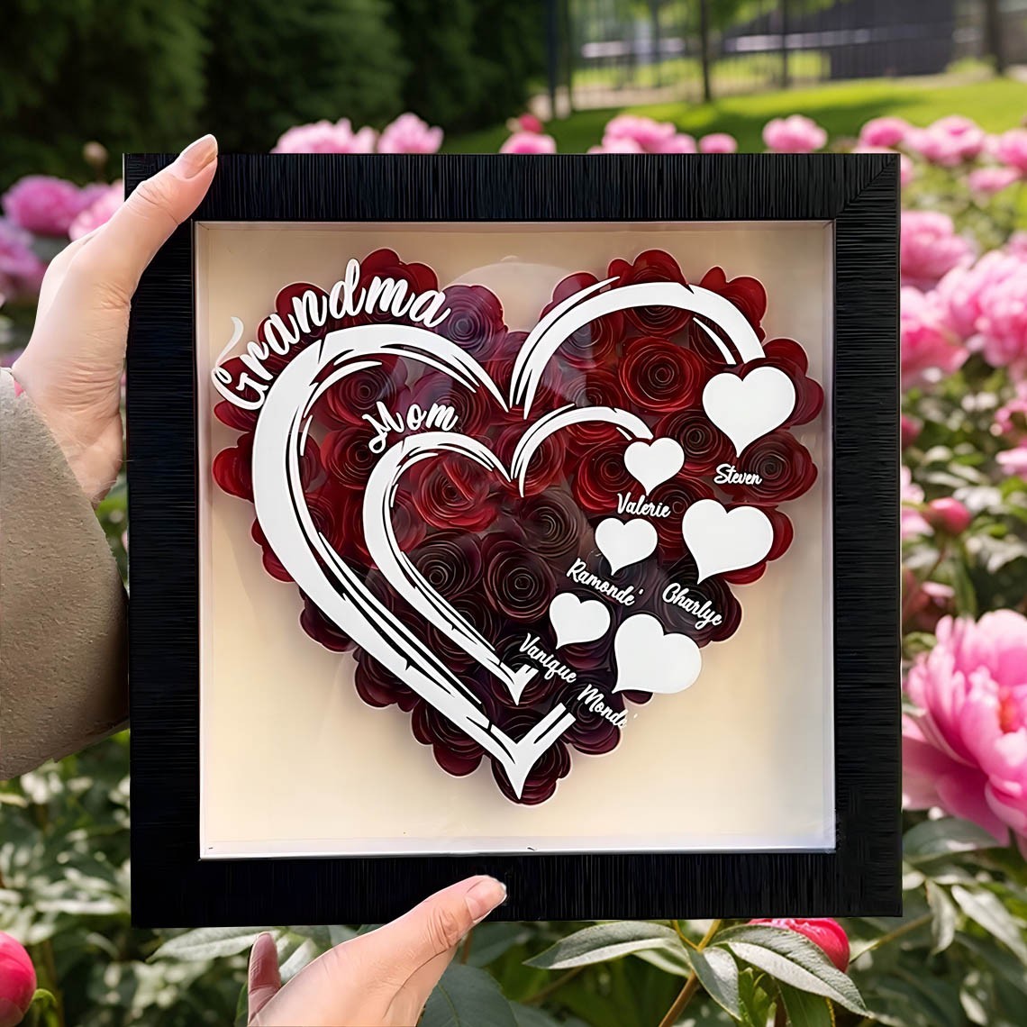 Custom Mum Heart Shaped Flower Shadow Box with Kids Names Unique Gifts for Grandma Mum Mother's Day Gift Ideas