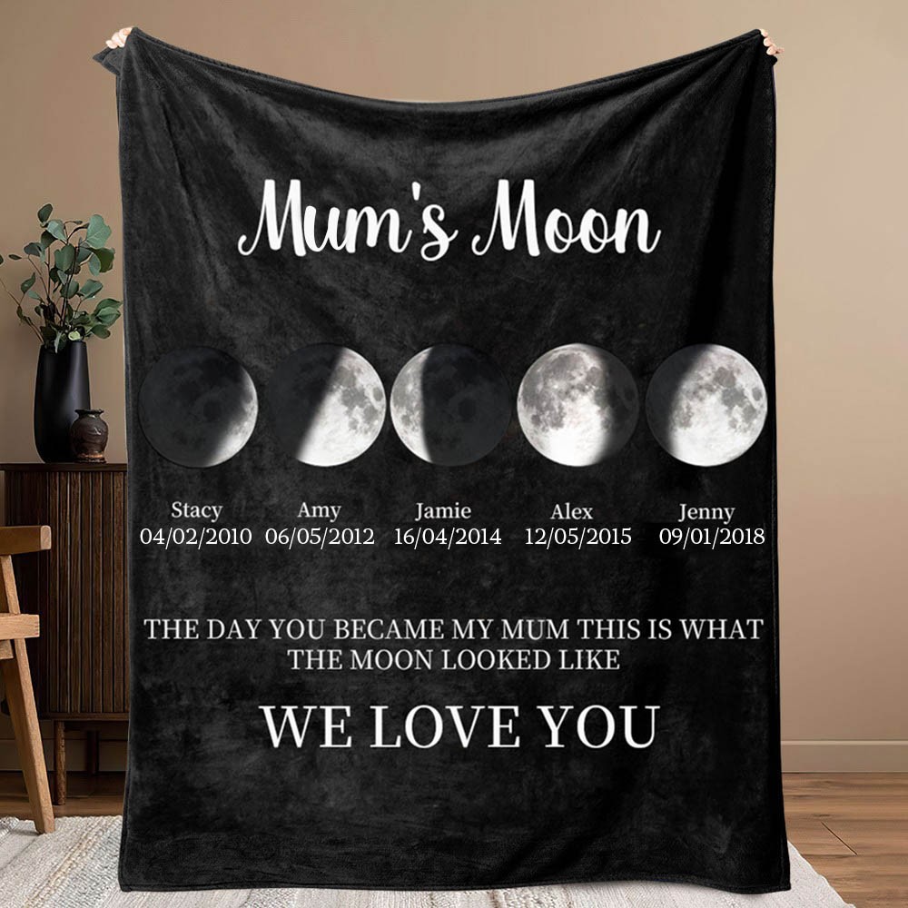 Custom Mum's Moon Moon Phase Blanket With Kids Names Unique Keepsake Gift For Mum Perfect Mother's Day Gift Ideas
