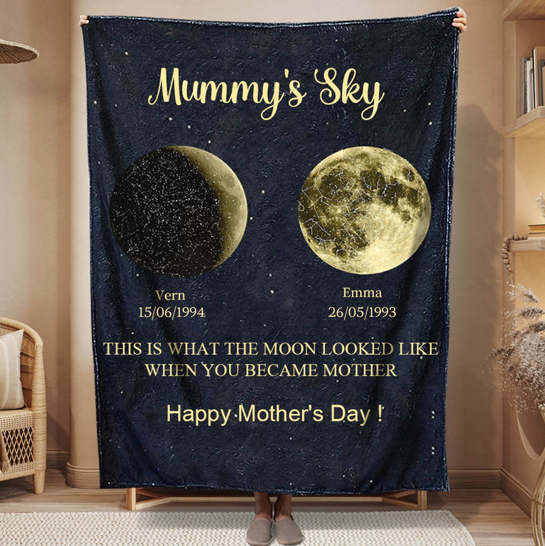 Custom Mummy's Sky Moon Phase Blanket With Date Family Keepsake Gifts For Mum Mother's Day Gifts