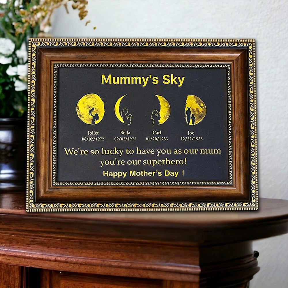 Custom Mummy's Sky Moon Phase Print Frame with Kids Names Keepsake Gifts for Mum New Mum Gift Mother's Day Gift