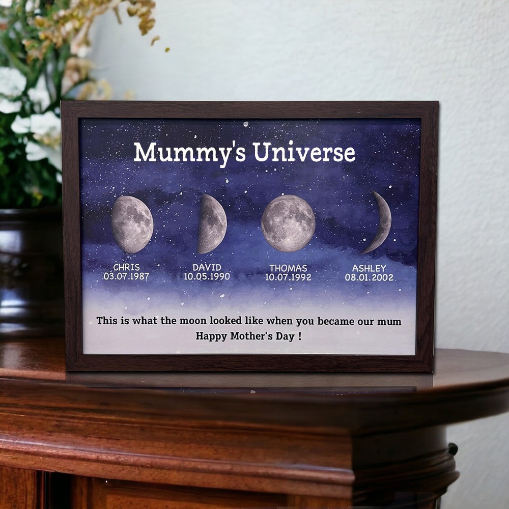 Custom Mummy's Universe Moon Phase Frame By Date with Kids Names Unique Gifts for Mum Mother's Day Gift