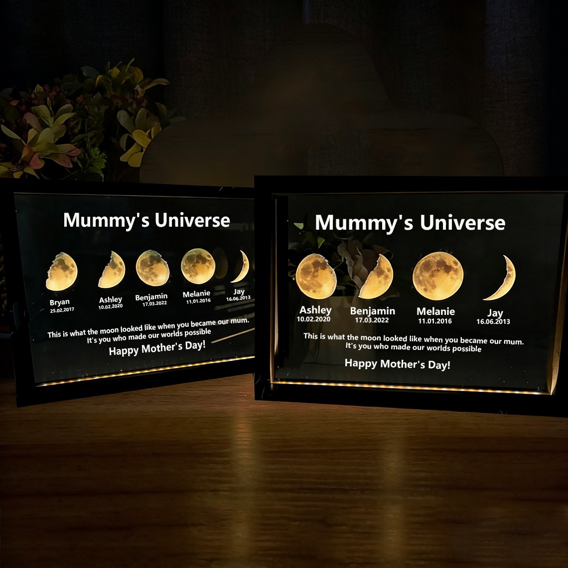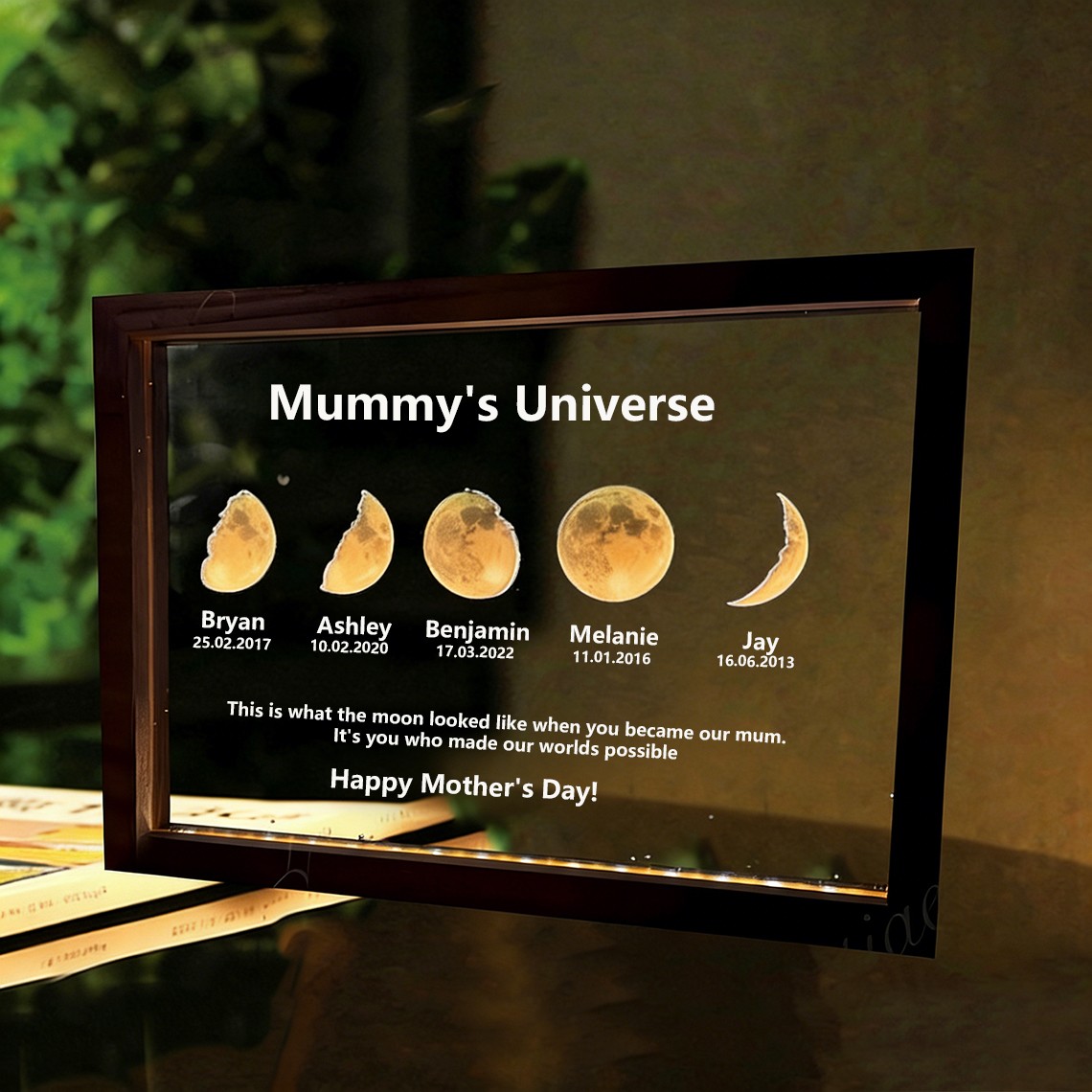 Custom Mummy's Universe Moon Phase Night Light Frame with Kids Names Gifts for Mum Grandma Unique Mother's Day Gift
