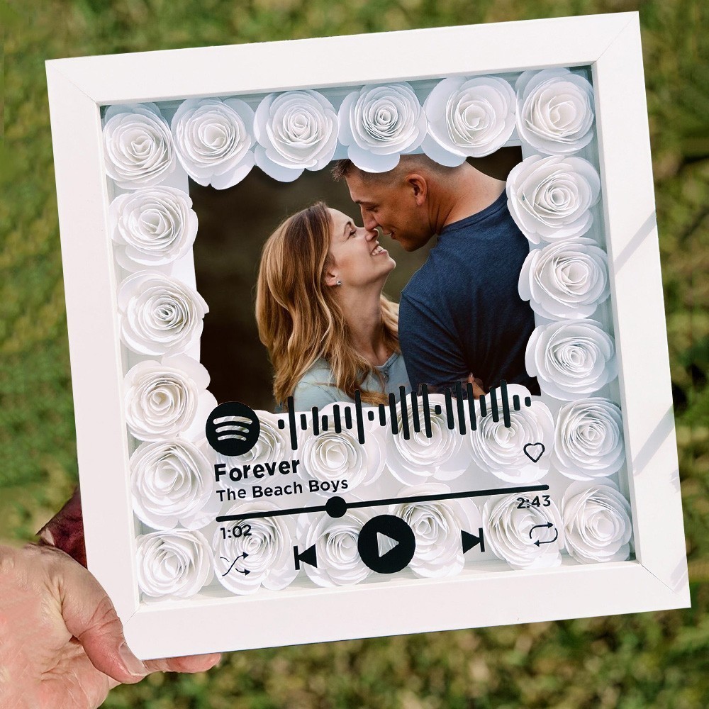 Custom Music Spotify Code Flower Shadow Box With Photo Christmas Gifts For Her Couple Gift Ideas