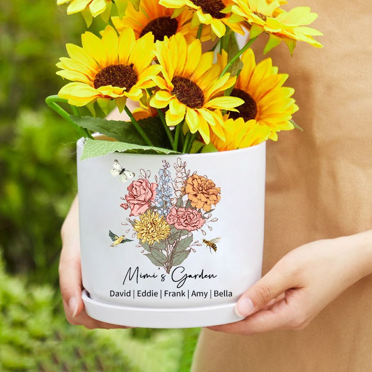 If your mother or grandmother has a passion for gardening and adorning her outdoor space with blossoms, then this planter is a must-have! This personalised birthday flower planter serves as an ideal Mother's Day gift for mum.