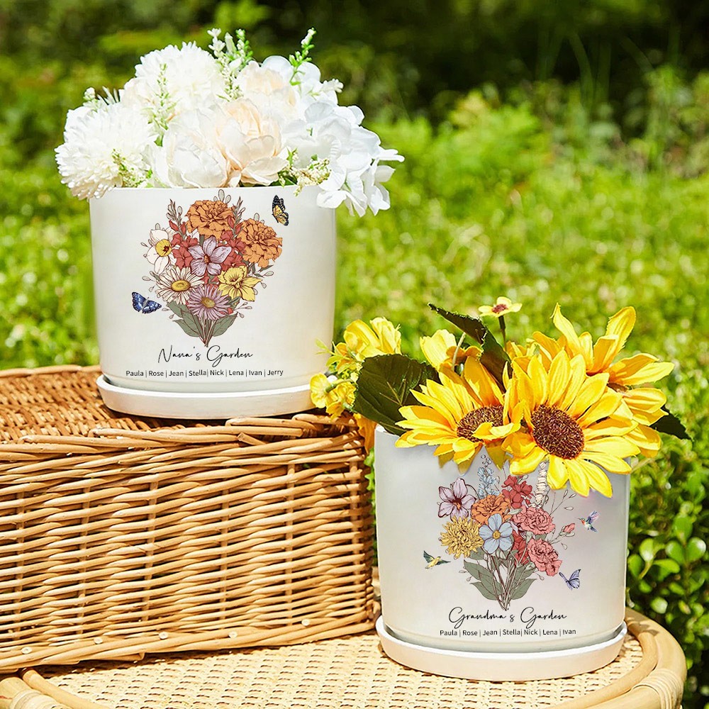 Custom Nana's Garden Art Print Birth Flower Bouquet Outdoor Pot Useful Gifts For Mum Grandma Mother's Day Gift Idea