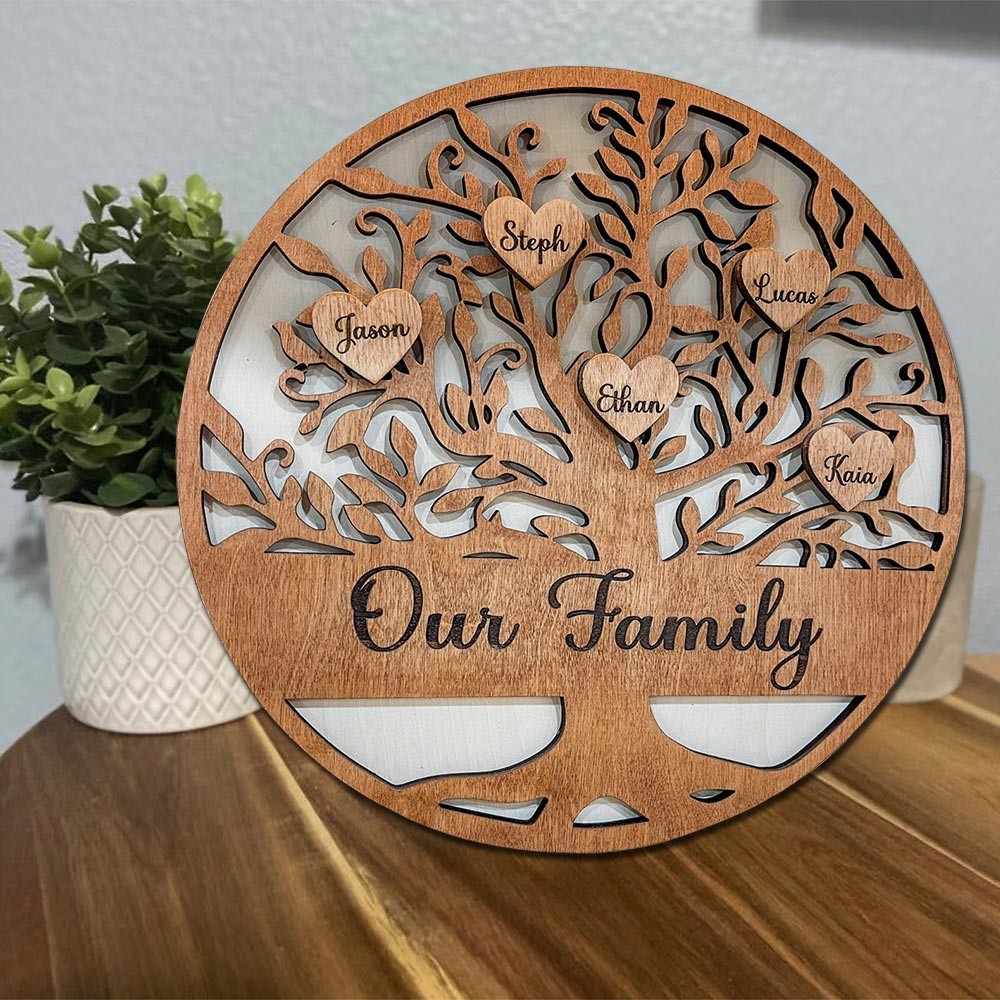Custom Our Family Tree Wood Sign with Kids Names Personalised Gifts for Family Christmas Gift for Mum Grandma
