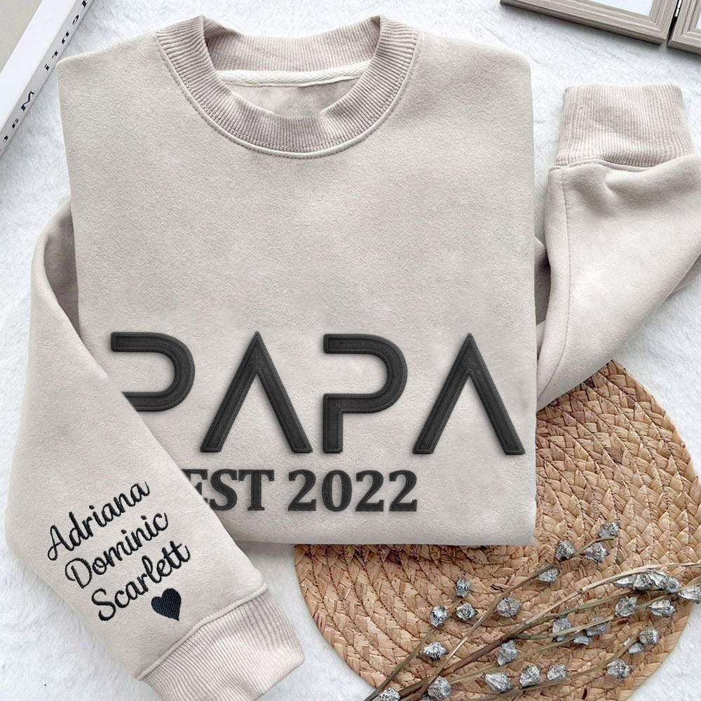 Custom Papa Sweatshirt With Embroidered Kids Names Unique Gift For Dad Father's Day Gift Ideas