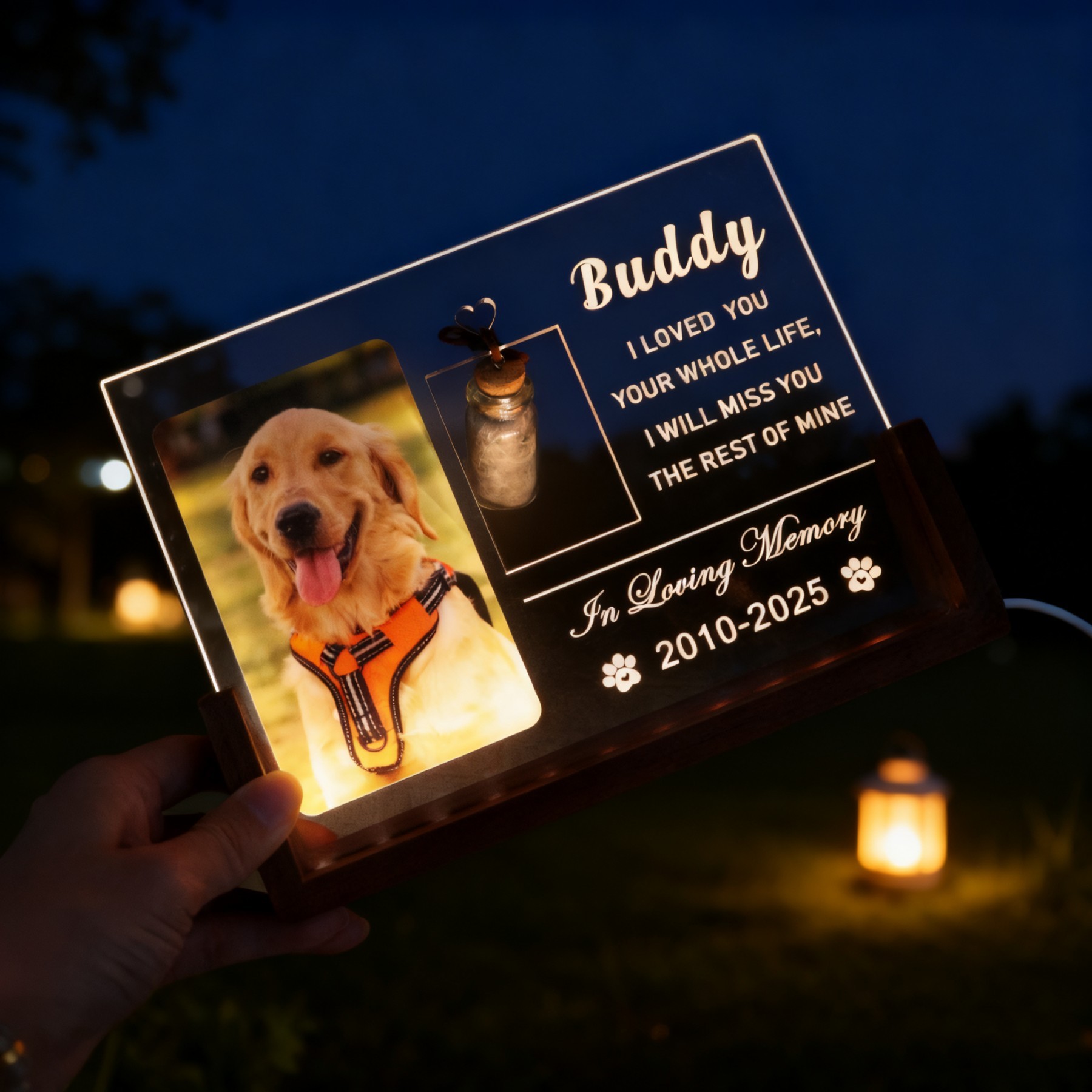 Custom Pet Memorial Night Light Frame with Pet Fur Jar Pet Sympathy Gifts Dog Loss Gift