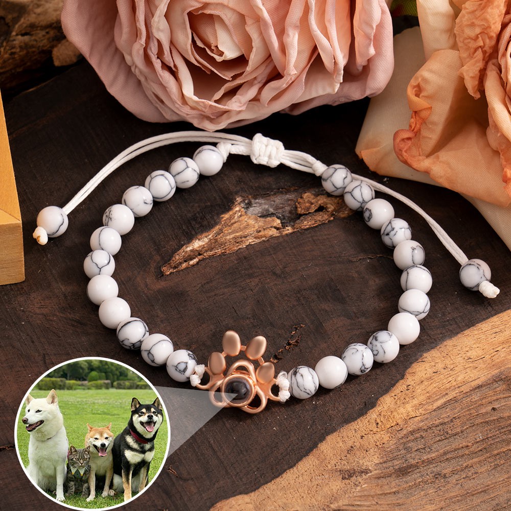 Custom Pet Paw Photo Projection Beaded Bracelet with Picture Inside Keepsake Gifts For Pet Lover