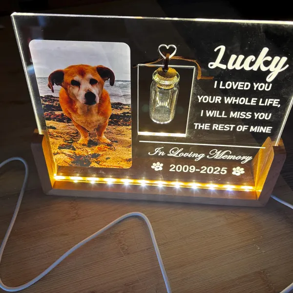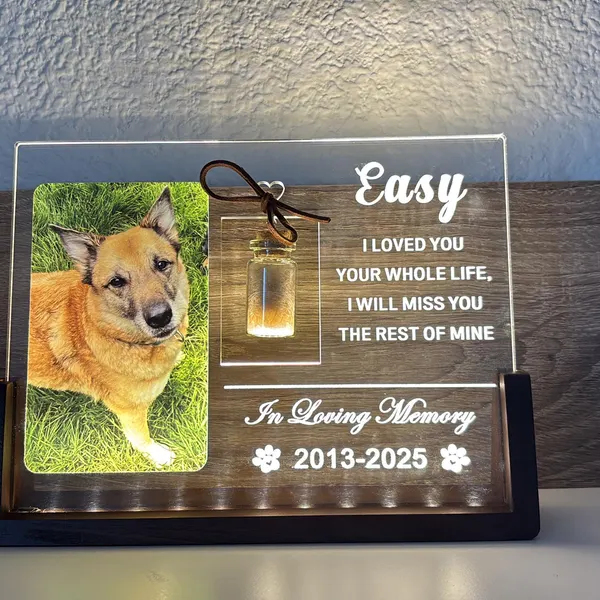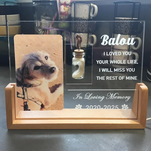 Custom Pet Photo Night Light with Pet Fur Jar Pet Memorial Gifts Dog Loss Gift