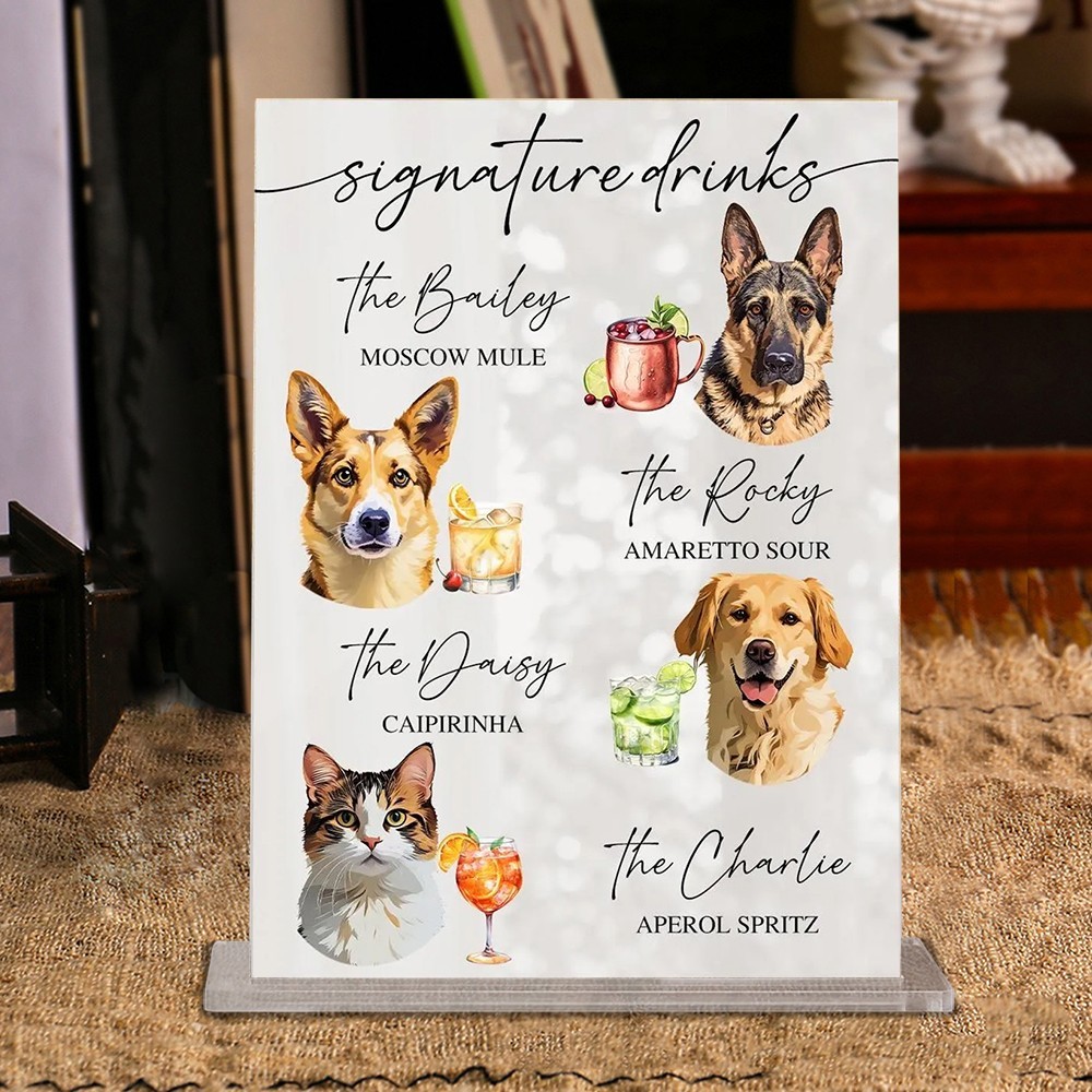 Custom Pet Portrait Signature Drink Sign Acrylic Wedding Table Bar Menu Signs Wedding Gift