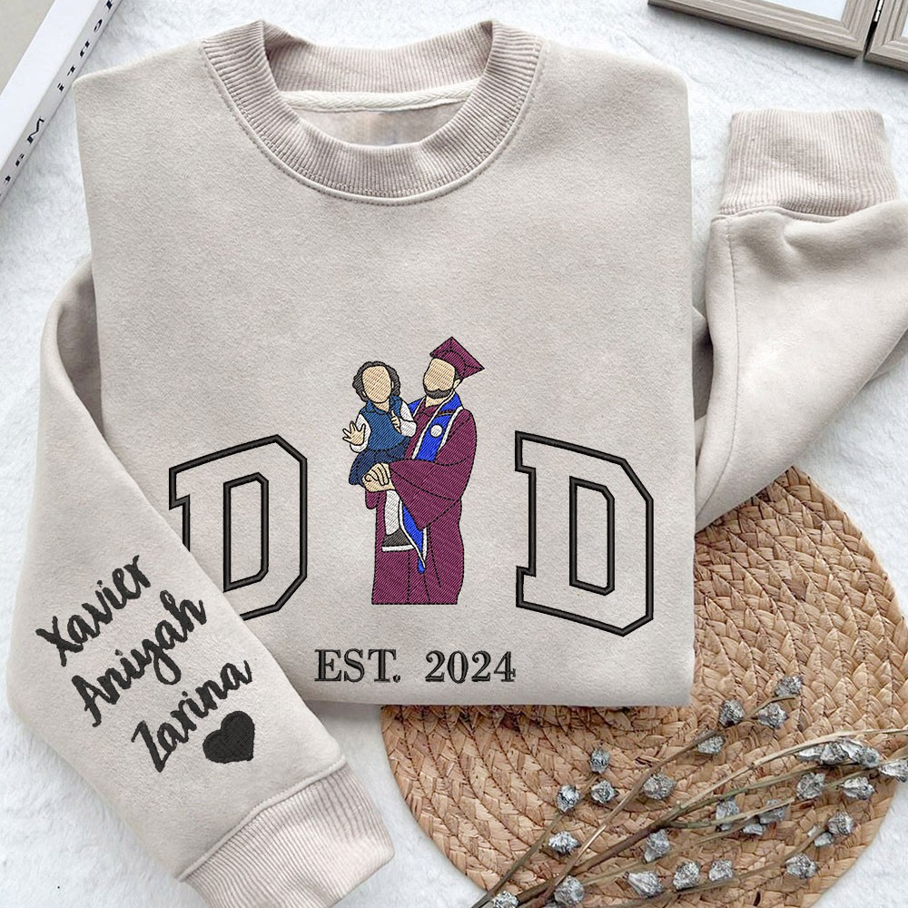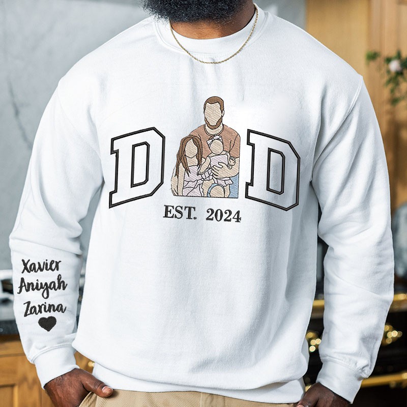Custom Photo Embroidered Dad Sweatshirt Hoodie With Date Unique Family Gift Father's Day Gift Ideas
