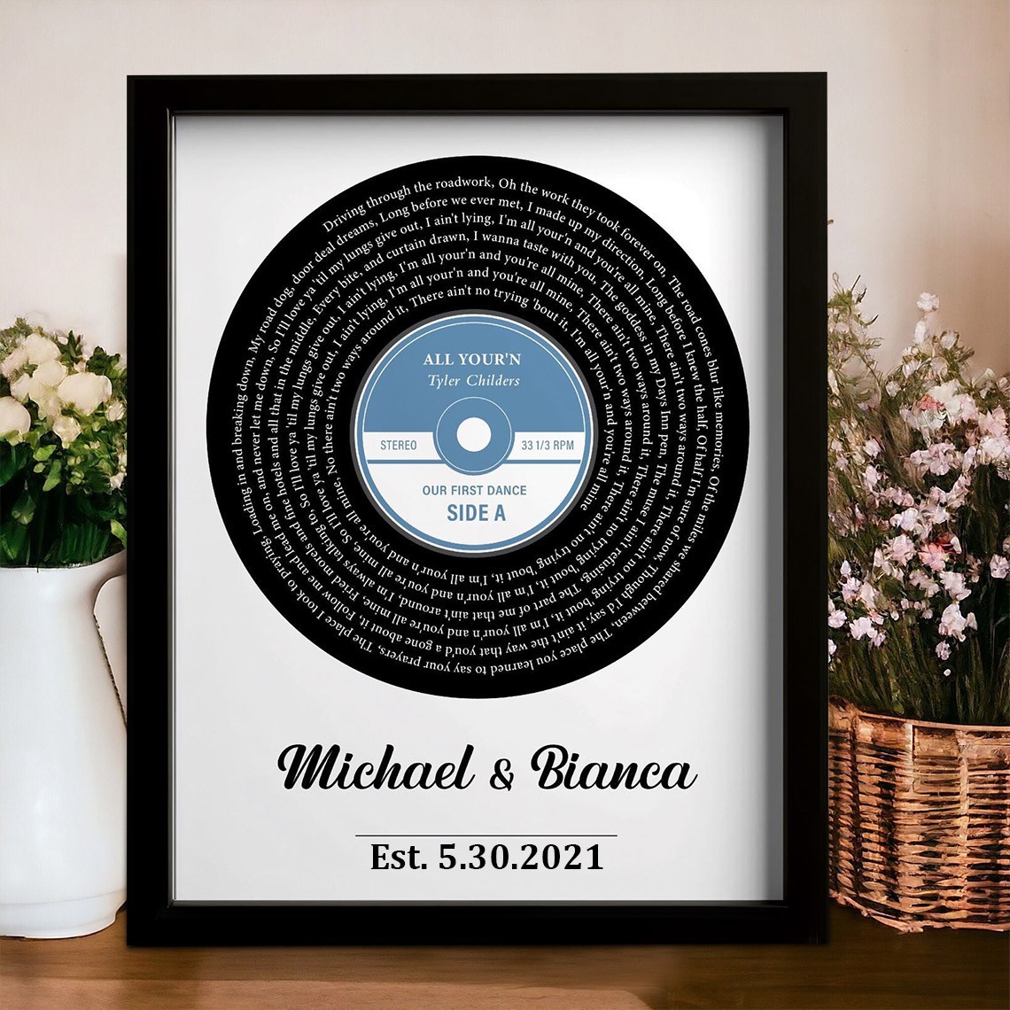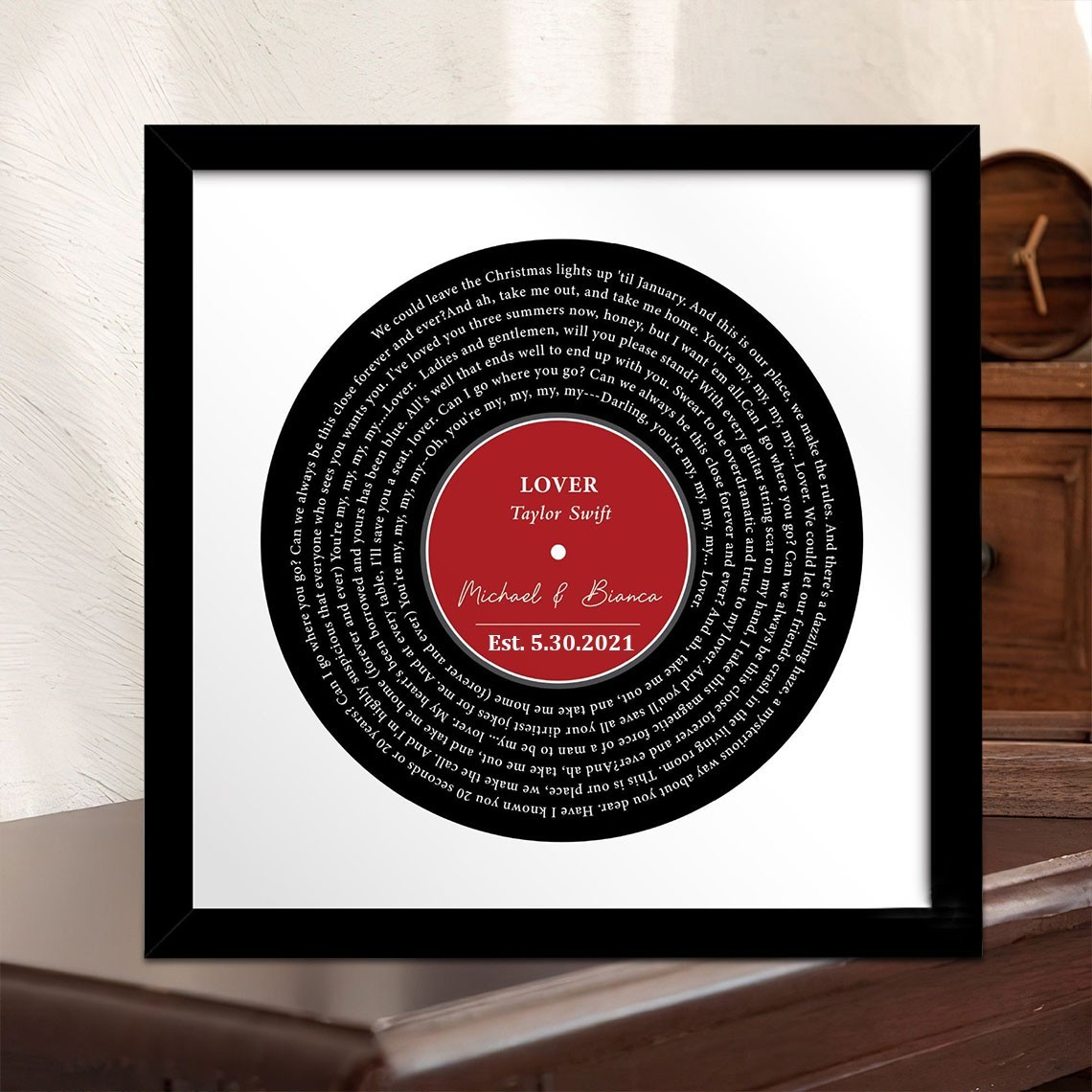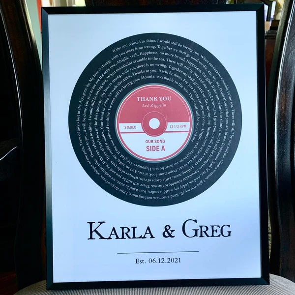 Custom Record Vinyl Song Lyrics Print Frame Gifts for Couples Wedding Anniversary Gift Ideas