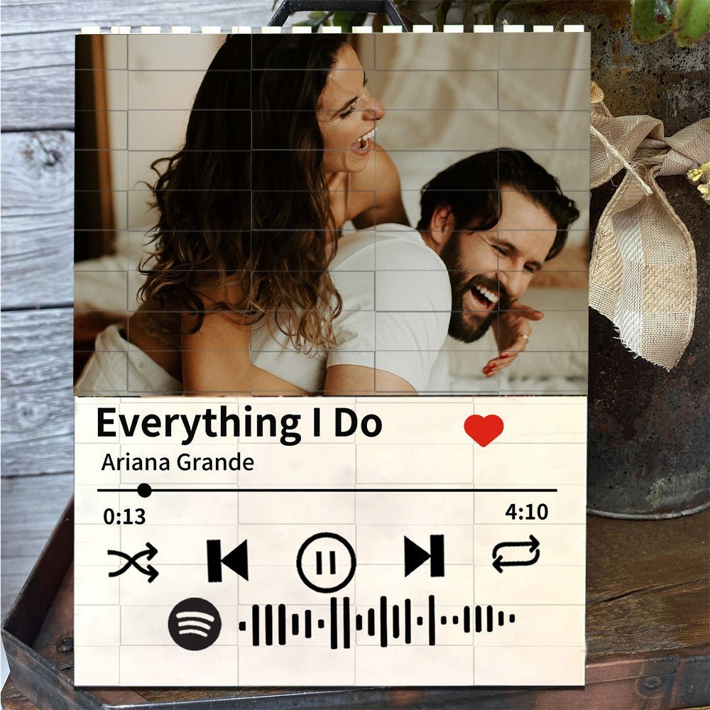 Custom Spotify Code Building Brick Photo Puzzle Wedding Anniversary Gift for Wife Husband Valentine's Day Gift for Couples