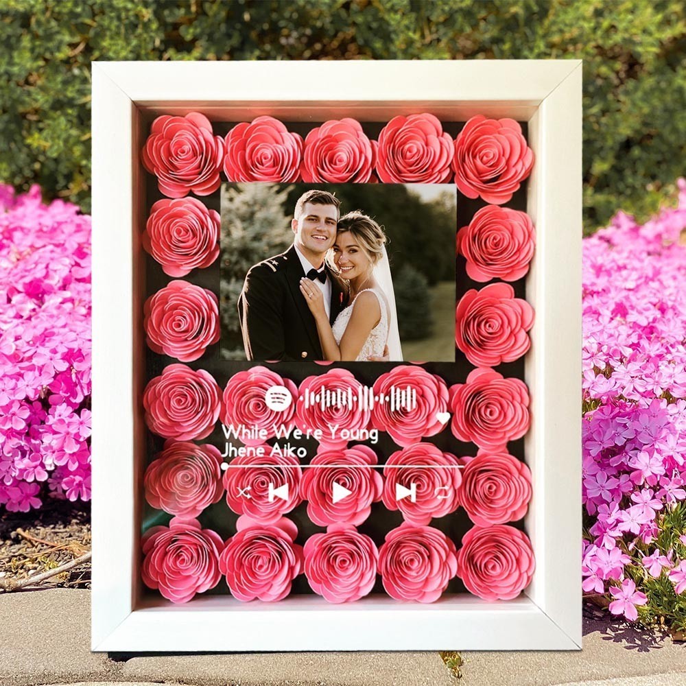 Custom Spotify Music Code Flower Shadow Box With Couple Photo Unique Gifts For Her Christmas Gifts