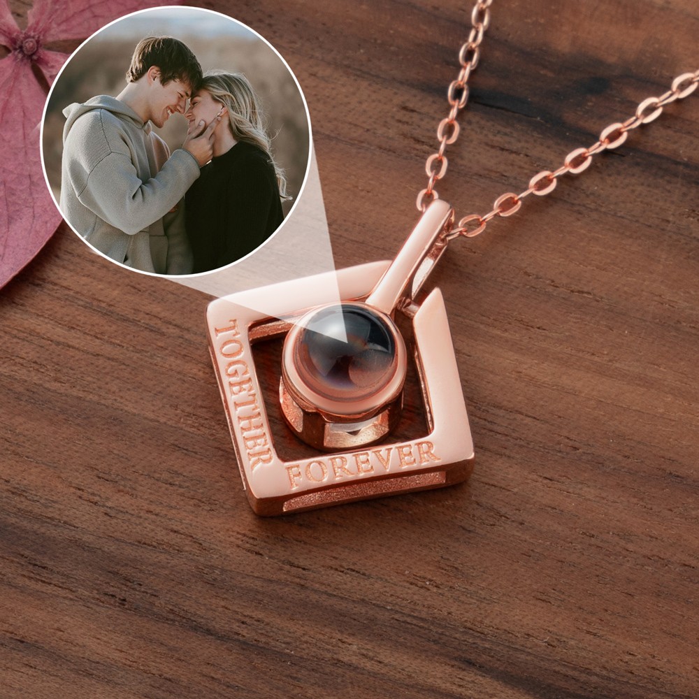Custom Square Together Forever Photo Projection Necklace Unique Gift For Couple Birthday Gift For Her