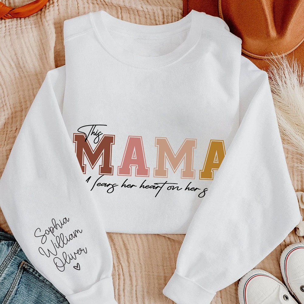Custom This Mama Wears Her Heart on Her Sleeve Sweatshirt Hoodie Mother's Day Gift