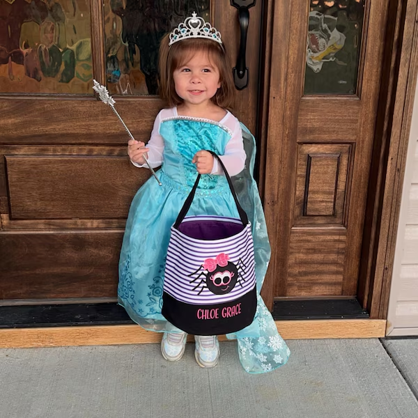 Custom Trick or Treat Bag with Name Halloween Bucket Candy Bag Halloween Gift for Kids