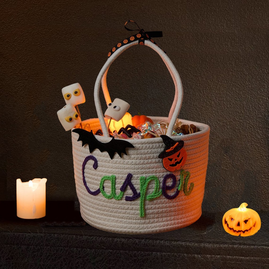 Custom Trick or Treat Basket with Name Halloween Candy Tote Halloween Gift for Boys Girls