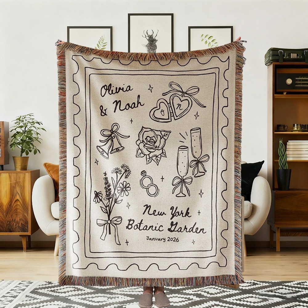 Custom Wedding Woven Blanket Bridal Shower Gift Wedding Anniversary Gifts Valentine's Day Gift