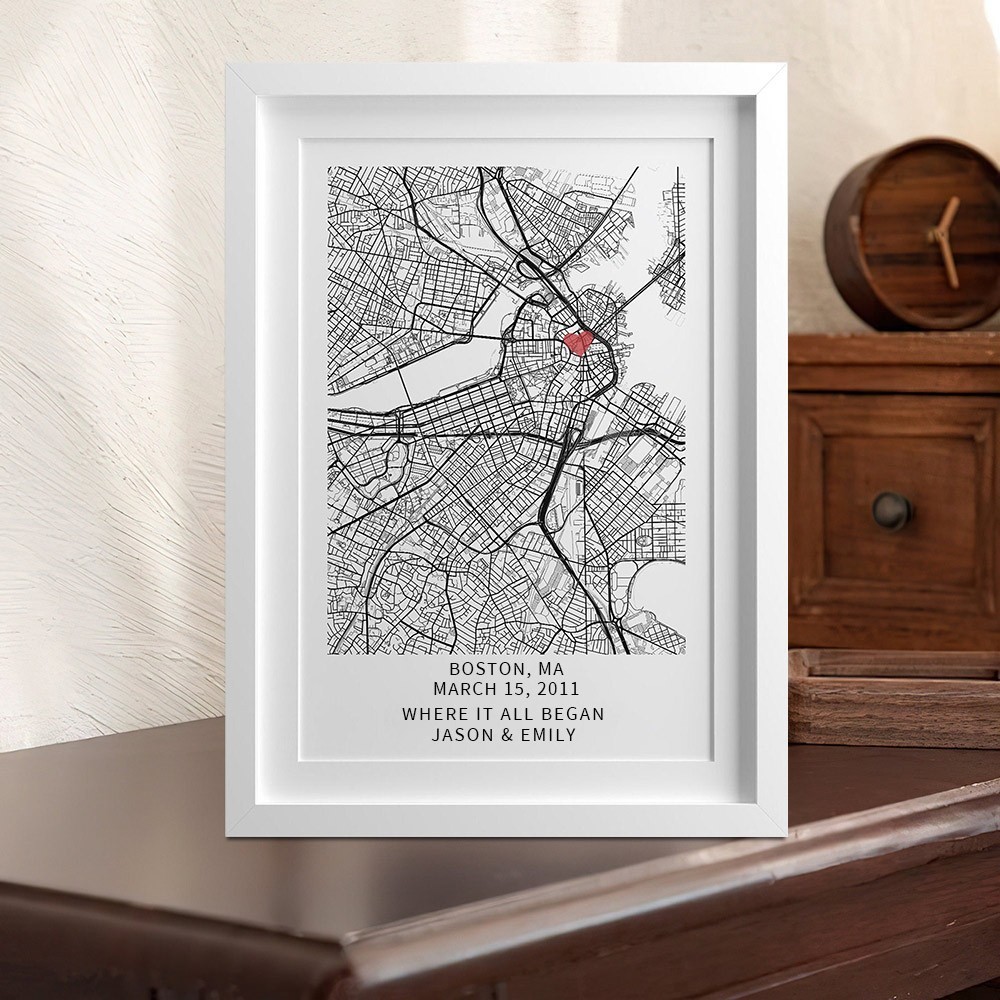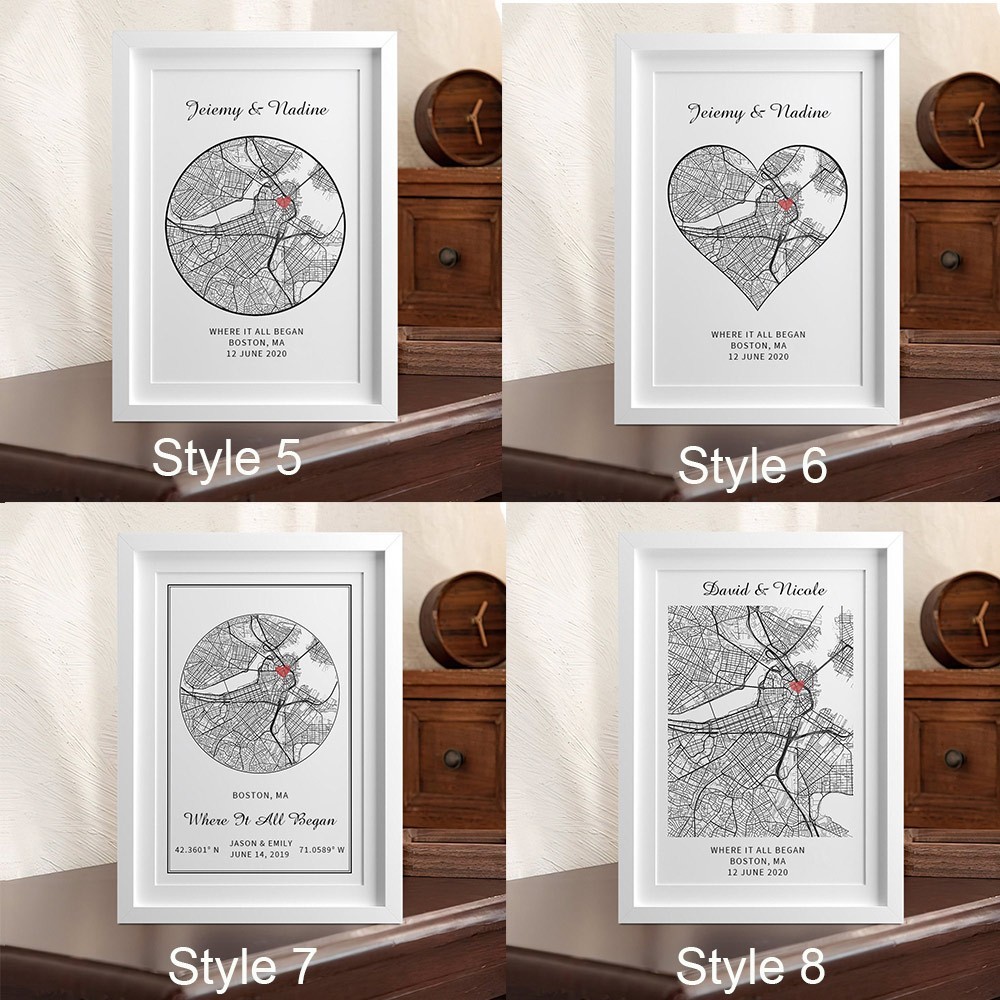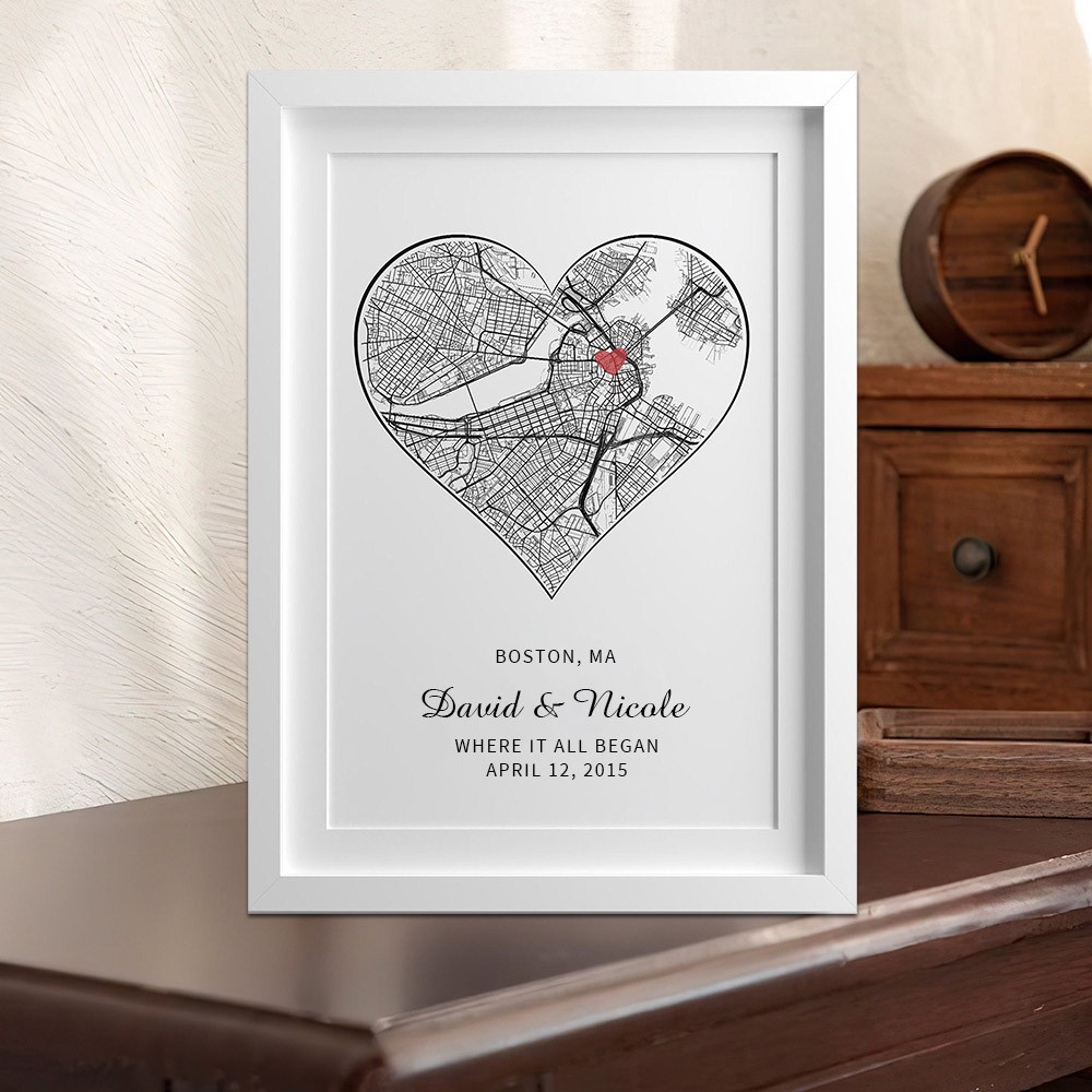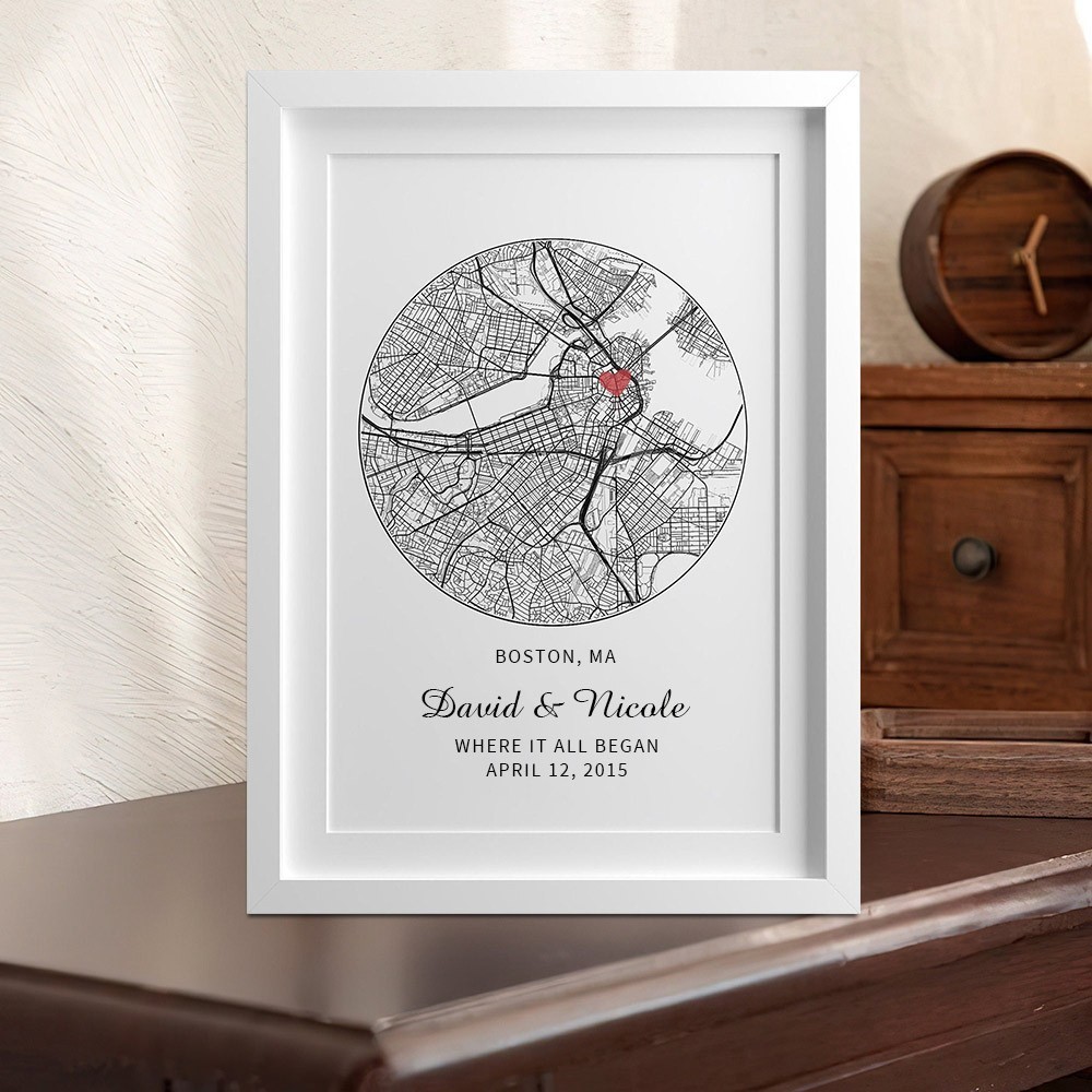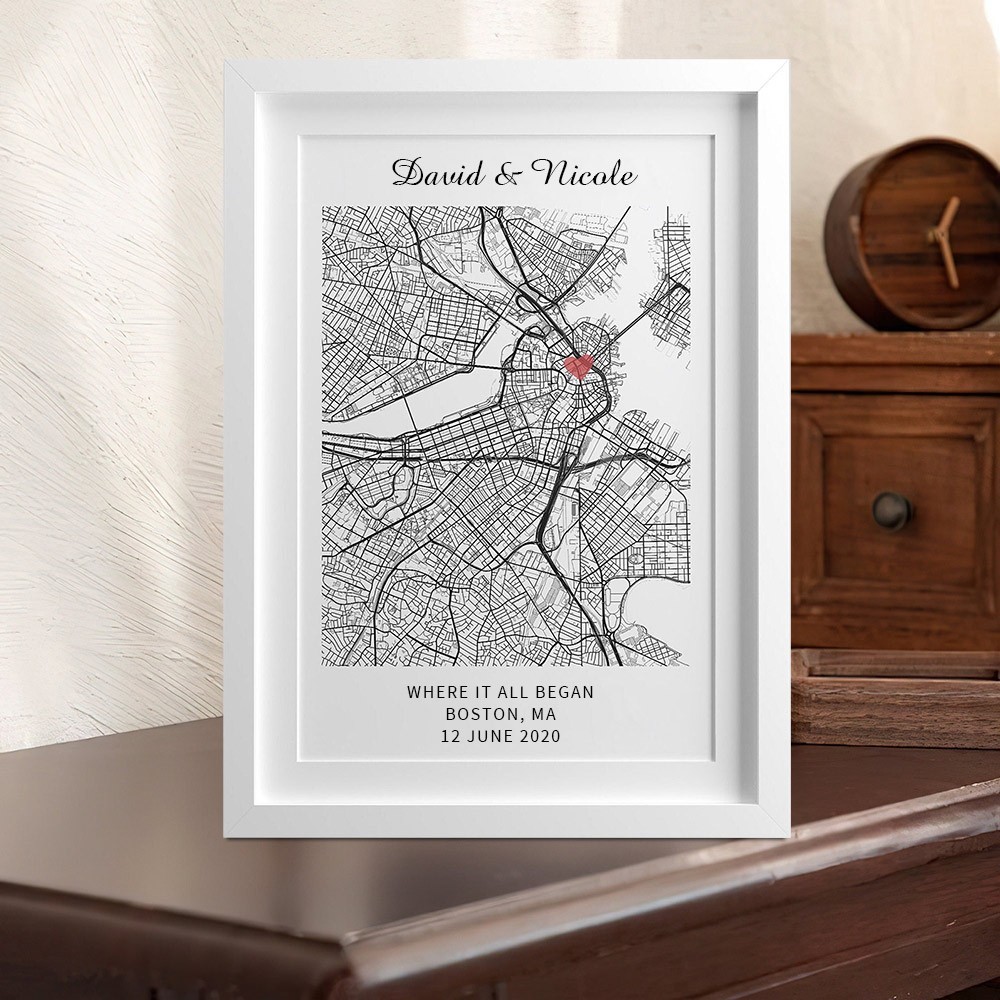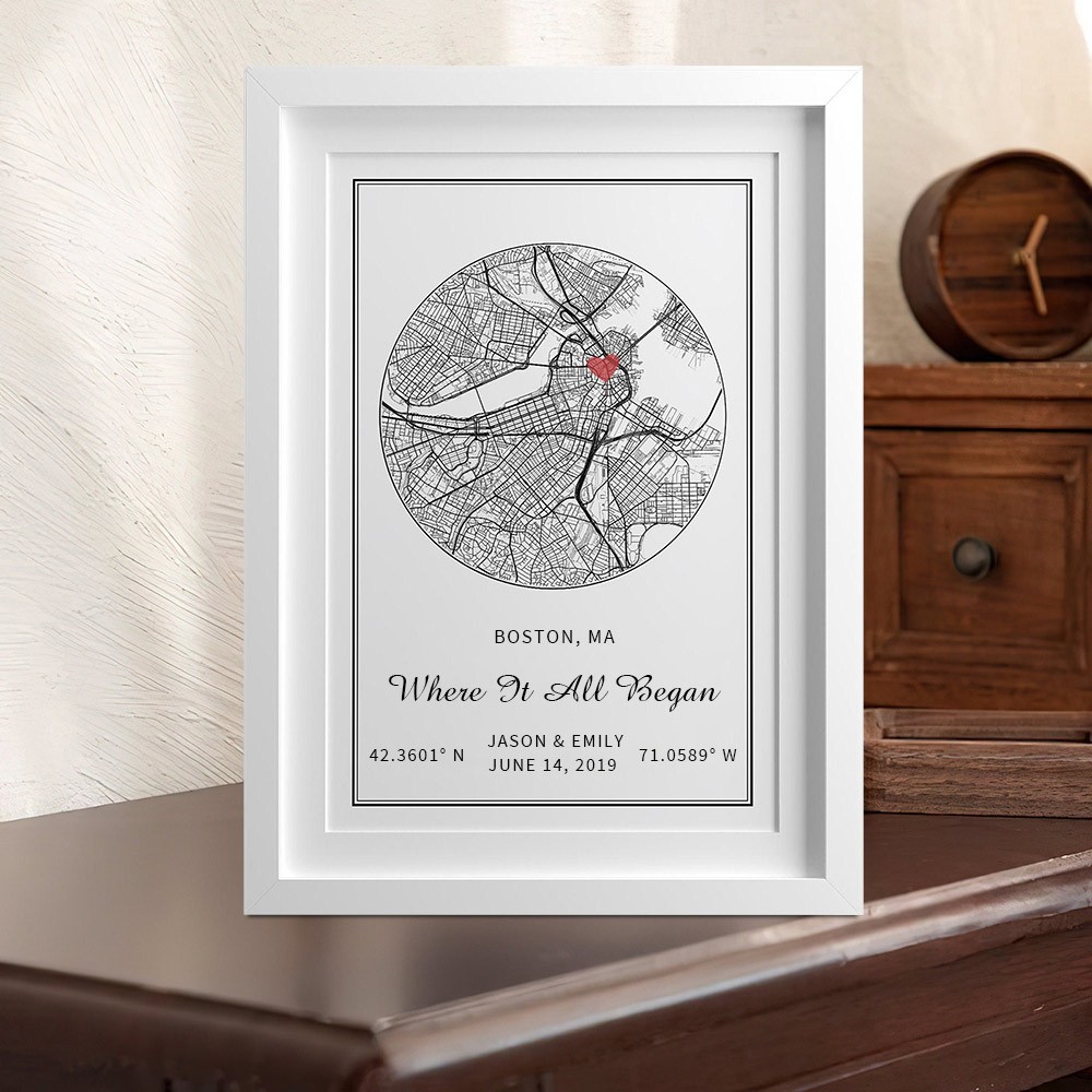 Custom Where It All Began Map Print Frame Wedding Anniversary Gifts for Her Valentine's Day Gifts for Couples