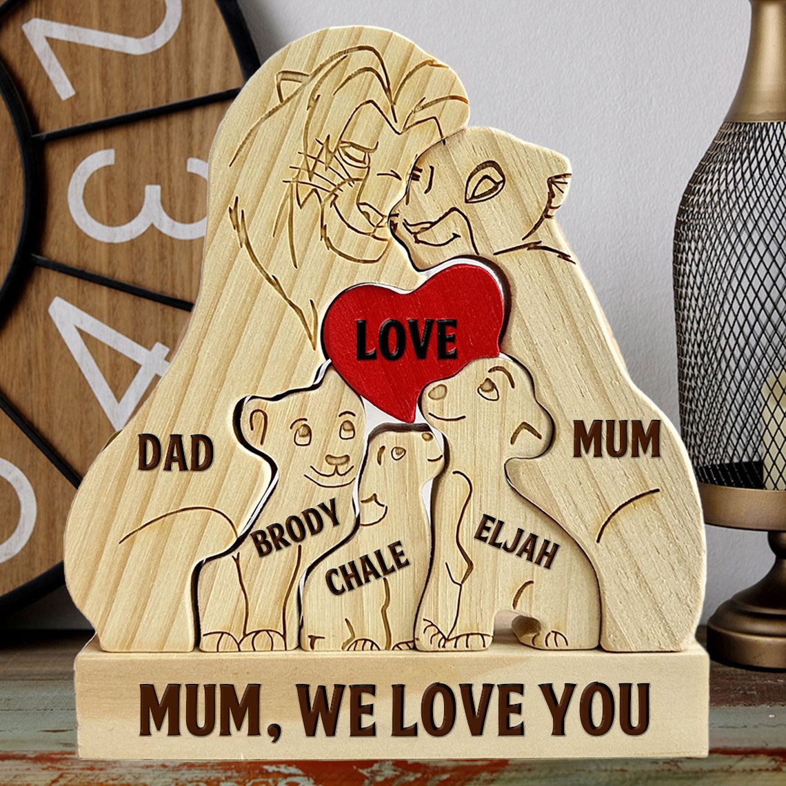 Custom Wooden Lion Family Puzzle with Engraved Names Unique Gift for Mum Christmas Gifts