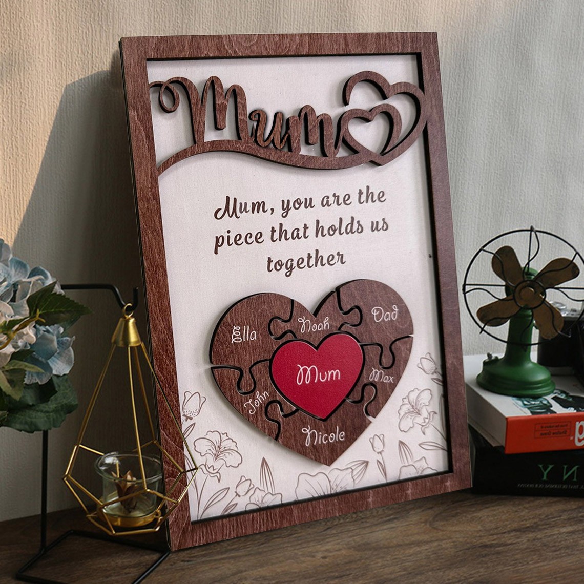 Custom Wooden Mum Puzzle Piece Sign with Kids Names Gift Ideas for Mum New Mum Gift Mother's Day Gifts