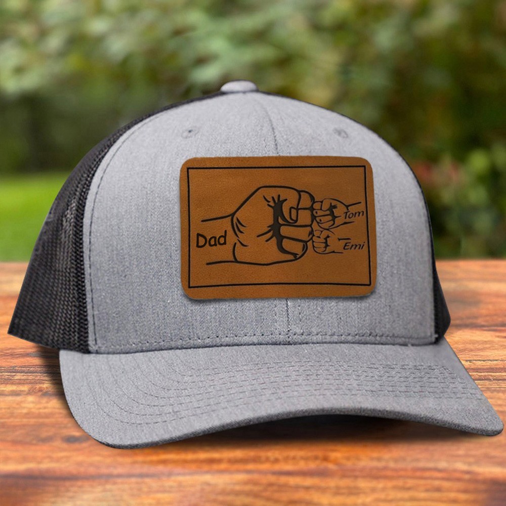 Dad Fist Bump Leather Patch Hat with Kids Names Custom Gifts for Dad Grandpa Father's Day Gift
