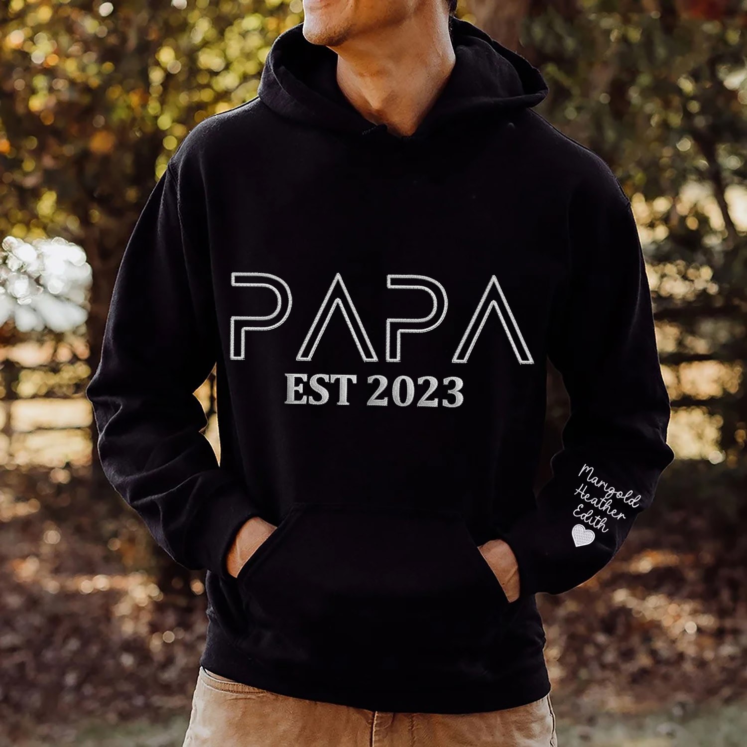 Embroidered Custom Kids Names Papa Sweatshirt Hoodie Heartful Gift For Dad Father's Day Gift Ideas