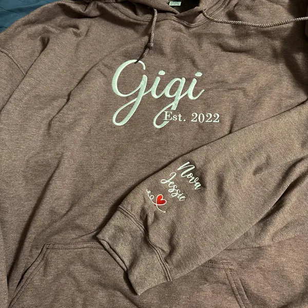 Embroidered Gigi Sweatshirt with Grandkids Names on Sleeve Custom Gifts for Gigi Mother's Day Gift Ideas