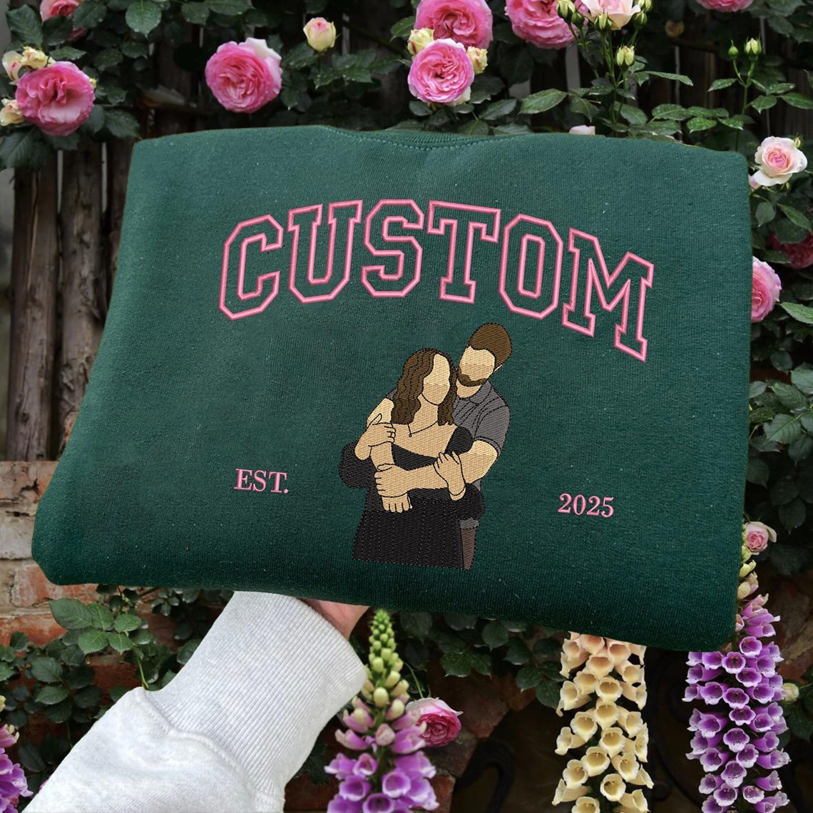 Custom Embroidered Photo Portrait Couple Matching Sweatshirt Unique Anniversary Gift for Wife Valentine's Day Gift for Couple