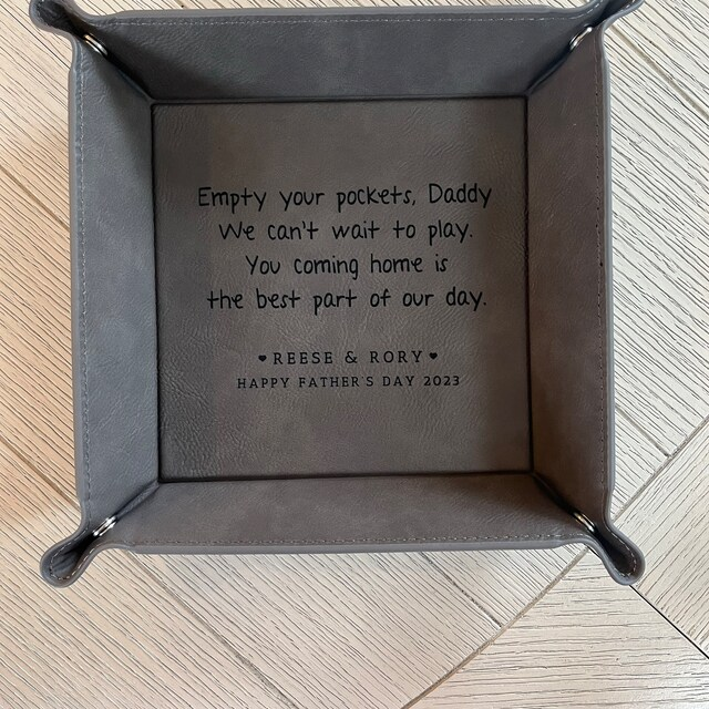Empty Your Pockets Daddy Personalised Engraved Leather Valet Tray for Dad New Dad Gift Christmas Gifts for Him