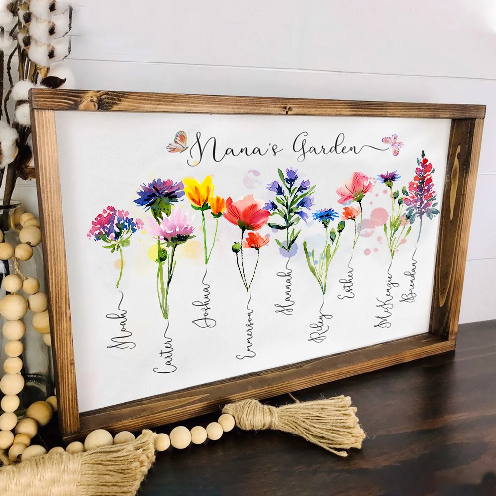 Engraved Wood Birth Flower Grandma's Garden Sign with Grandkids Name Personalised Mother's Day Gifts