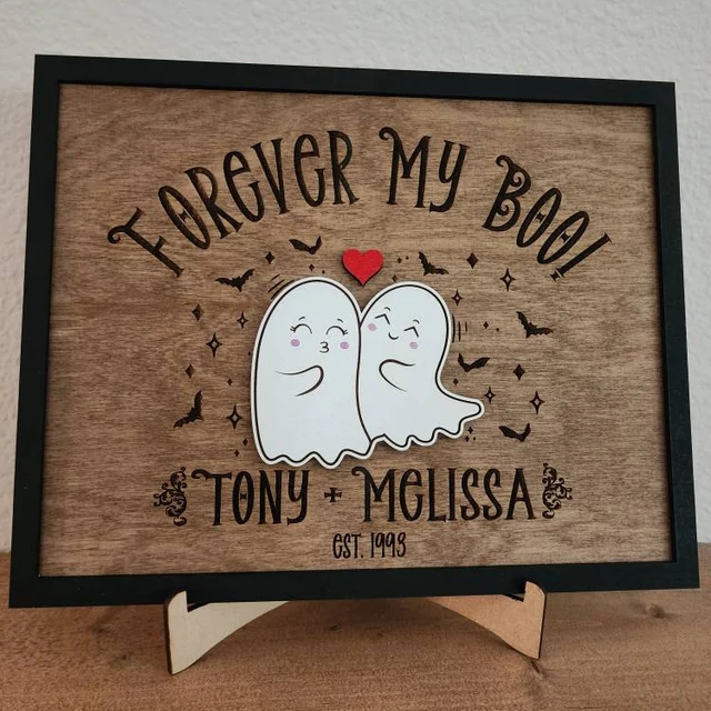 Forever My Boo Ghost Wood Sign Personalised Spooky Couple Sign Funny Halloween Gift Ideas