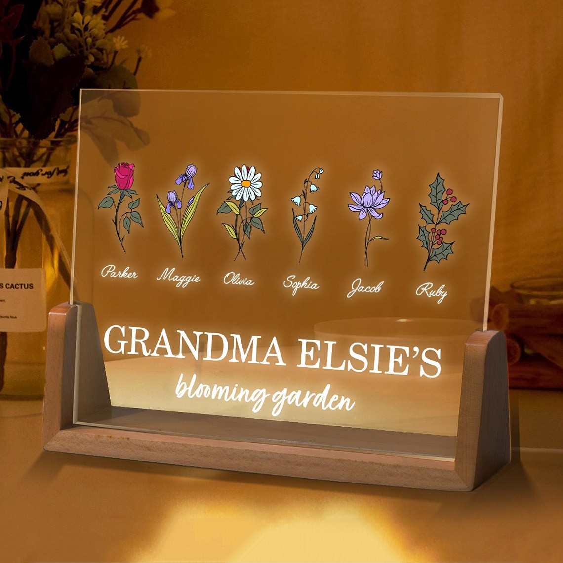 Grandma's Garden Birth Flower Night Light with Kids Names Custom Gifts for Grandma Mum Mother's Day Gift Ideas