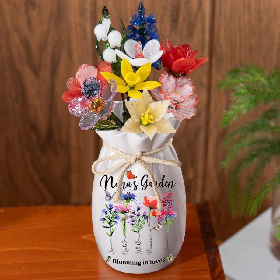Grandma's Garden Birth Month Flower Vase with Grandkids Names Custom Gifts for Grandma Mum Mother's Day Gift Ideas