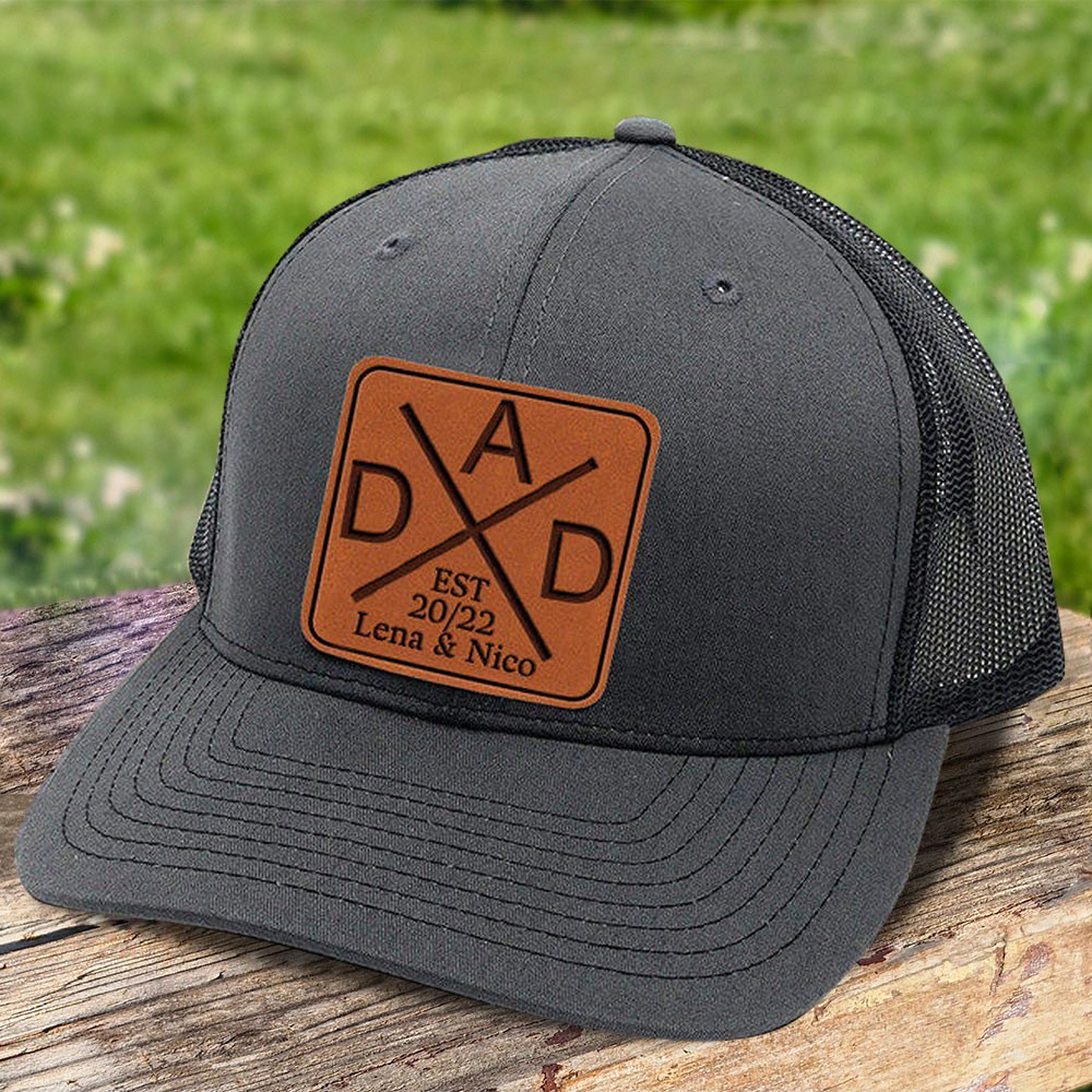 Custom Dad Real Leather Patch Hat With Date And Kids Names New Dad Gift Ideas Meaningful Gift for Papa