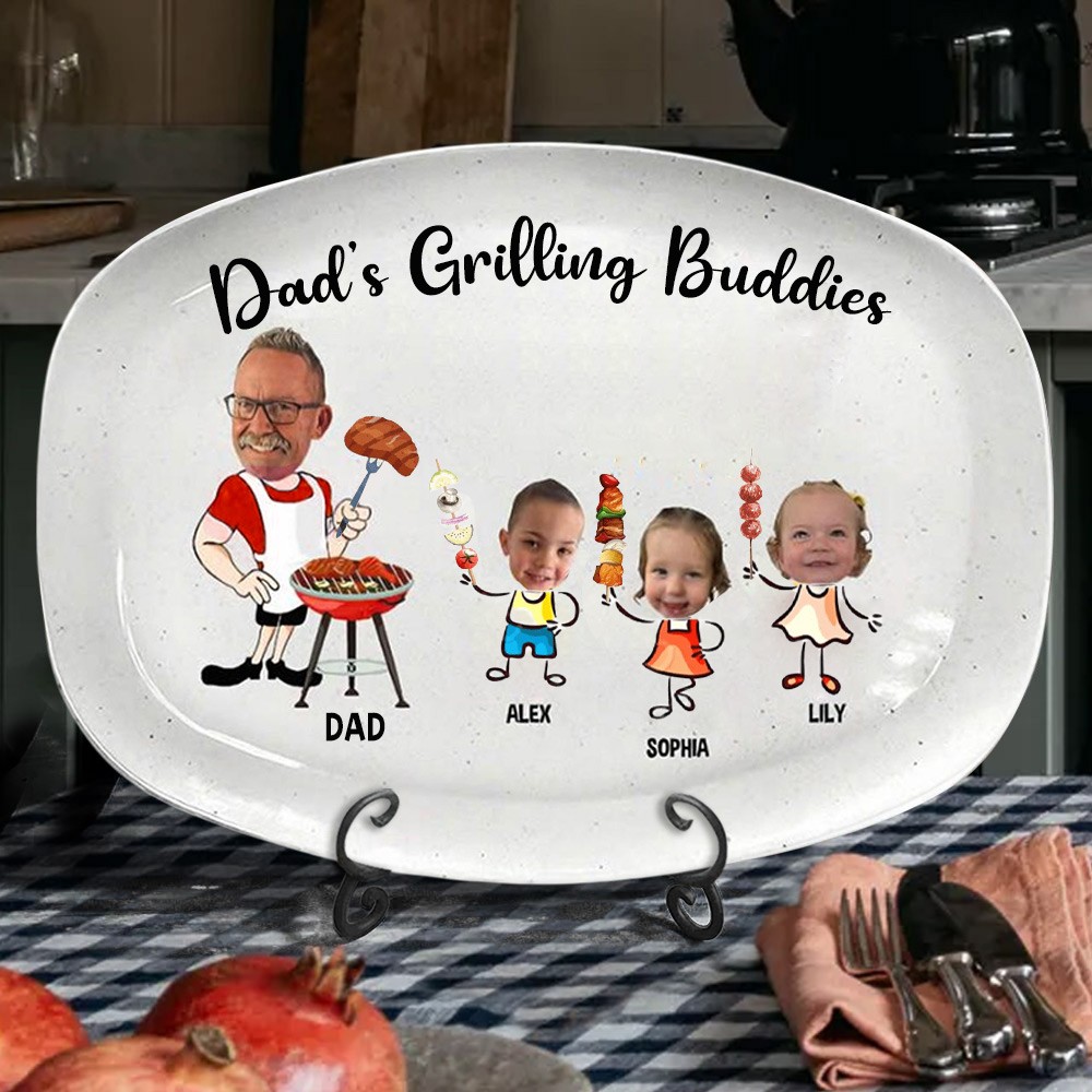 Custom Dad's Grilling Buddies BBQ Plate With Kids Portrait and Names Funny Kitchen Gifts for Dad Unique Father's Day Gift Ideas