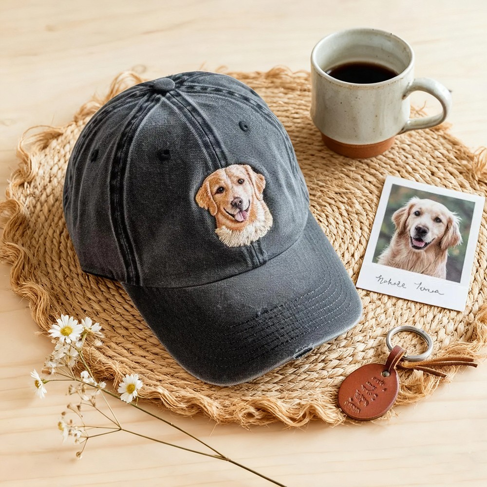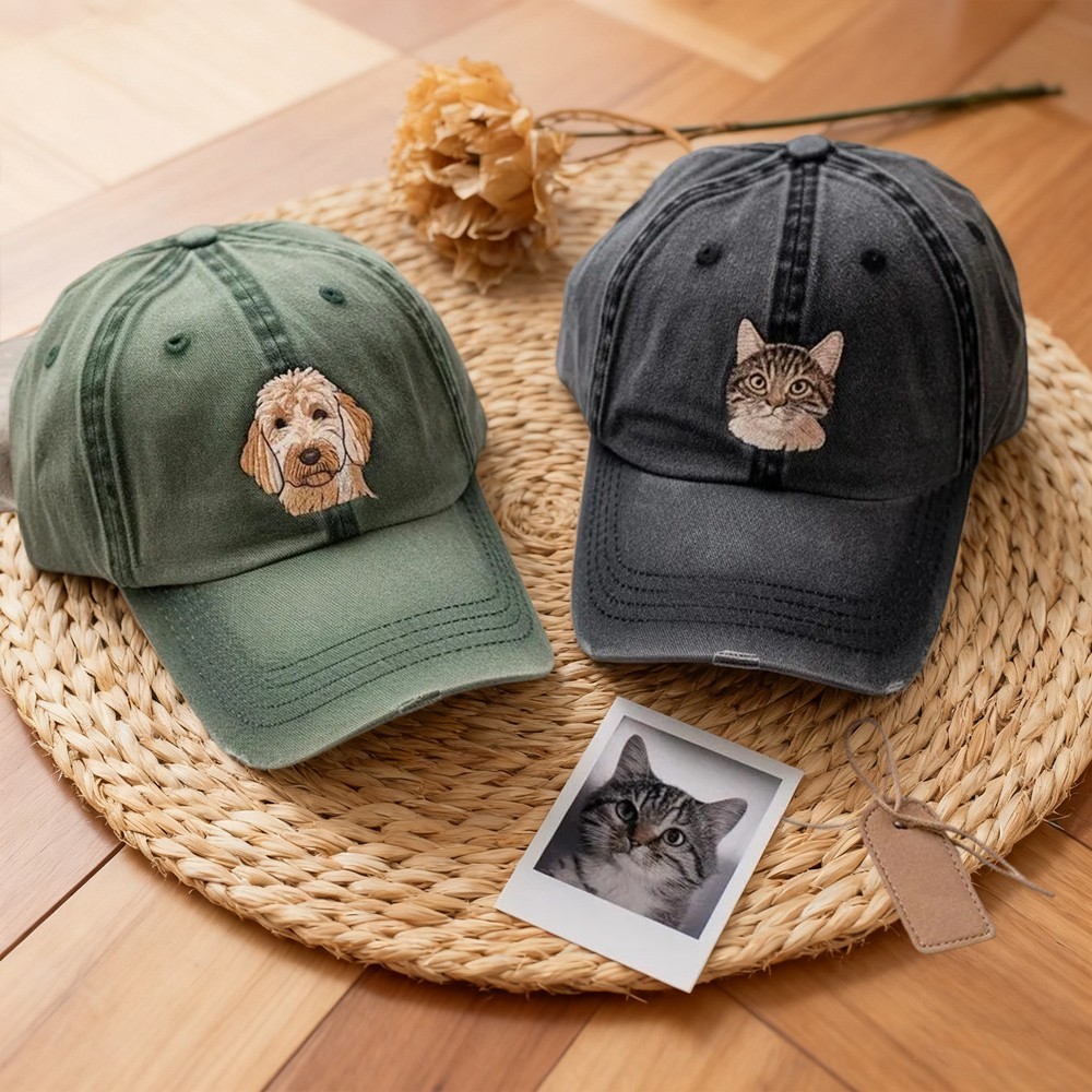 Custom Embroidered Pet Portrait Hat Personalised Dog & Cat Baseball Cap Gift for Dog Owners Pet Lover Gift Christmas Gift