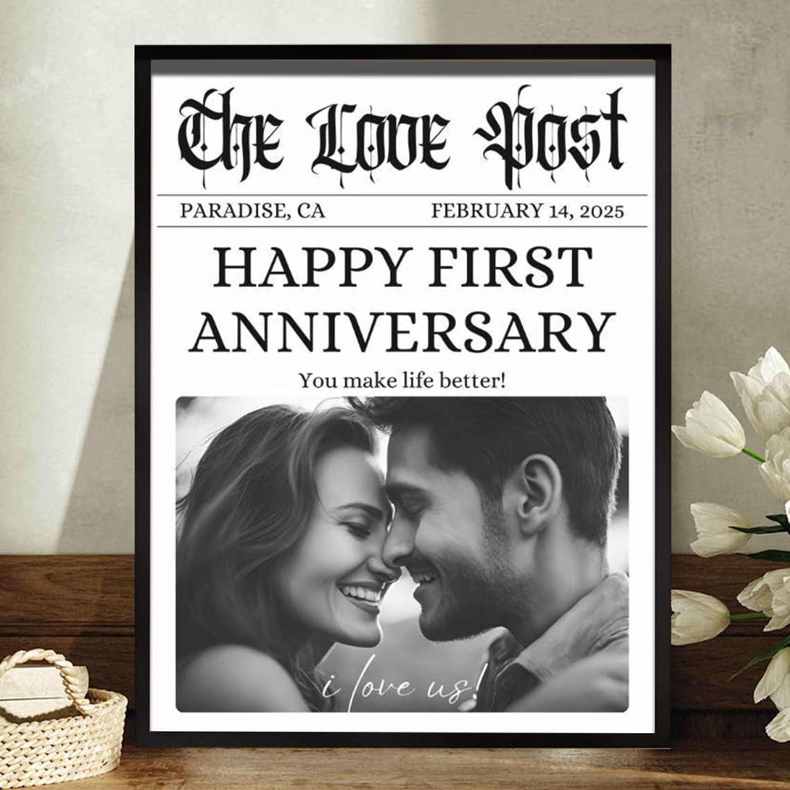 Custom Wedding Newspaper Print Frame Unique Gifts for Wife Husband Personalised Wedding Anniversary Gift