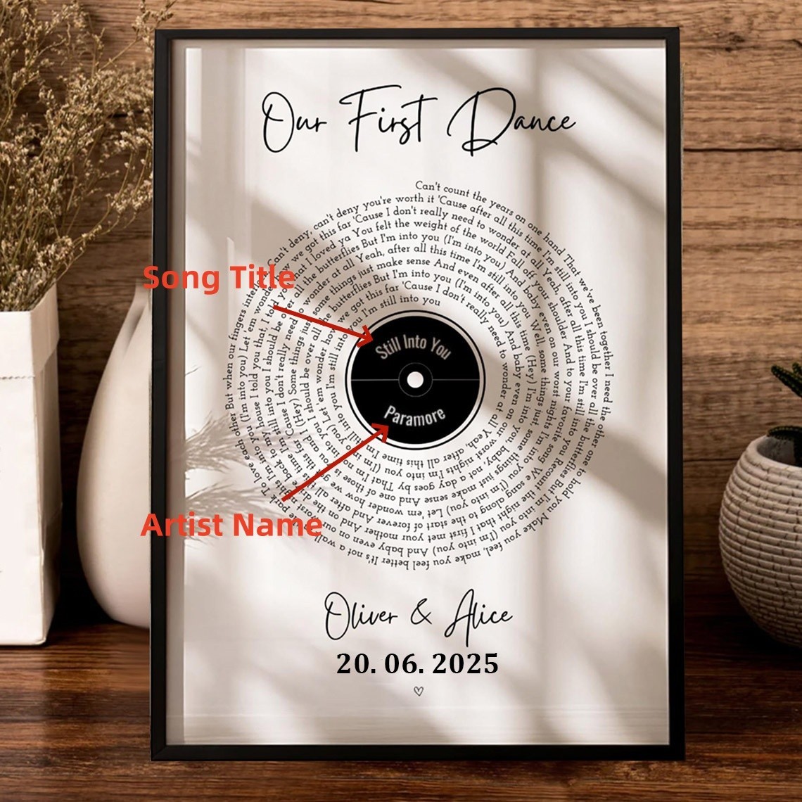Our First Dance Song Lyrics Personalised Vinyl Lyric Print Frame Gift for Couple Wedding Anniversary Gifts