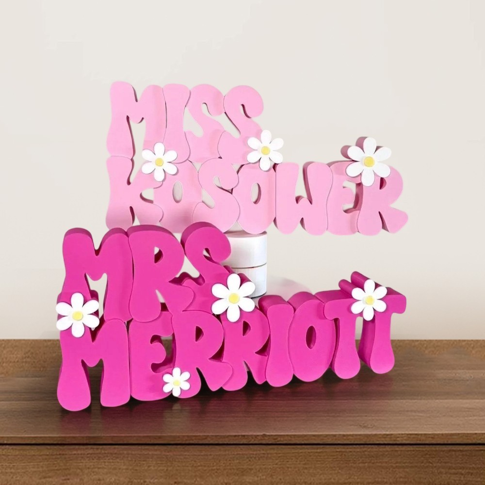 Personalised 3D Daisy Teacher Desk Name Plate Sign Office Decor Custom Gift for Teachers