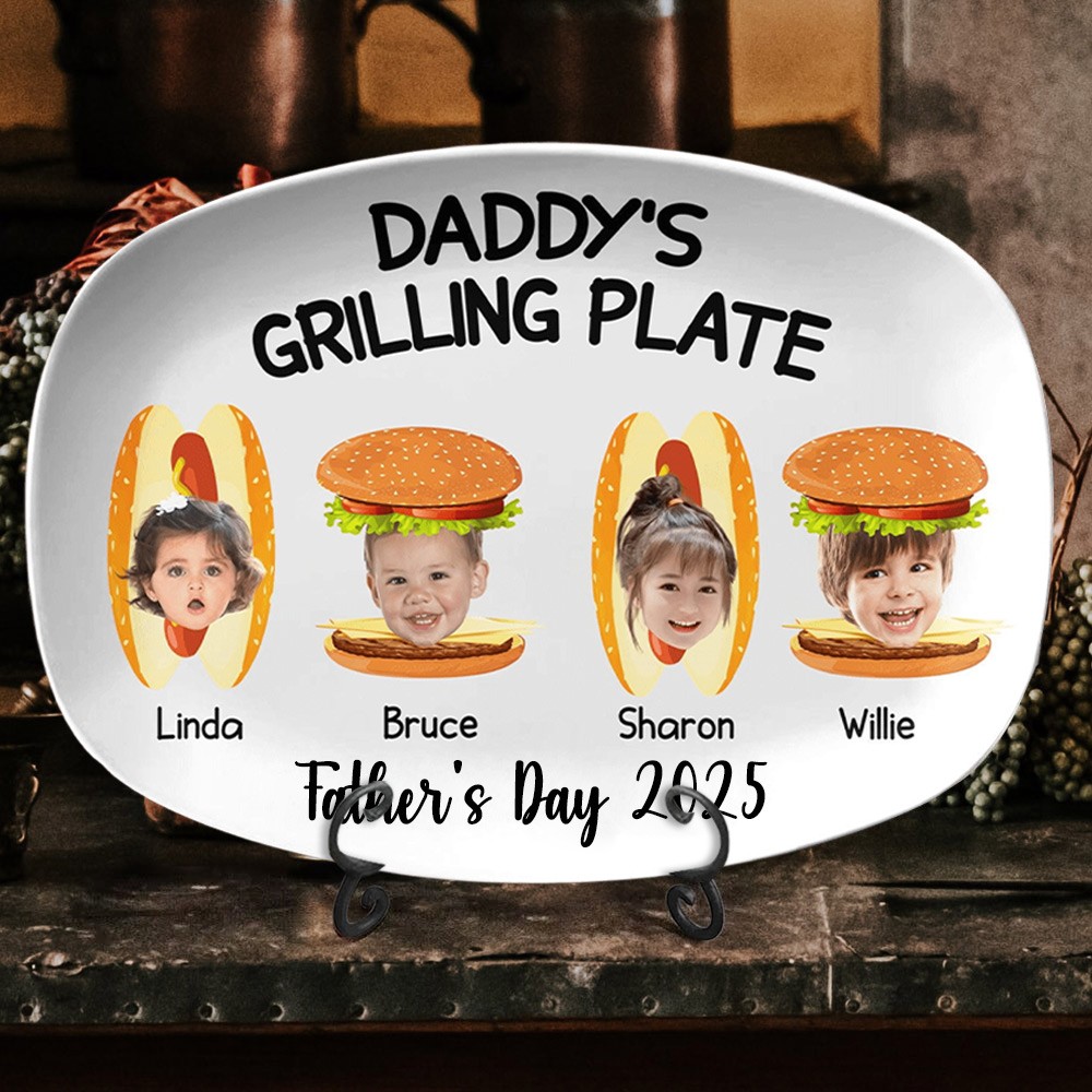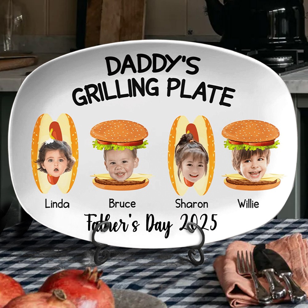 Personalised Art Print Daddy's Grilling Plate with Kids Portraits And Names Keepsake Gift For Dad Unique Father's Day Gift Ideas