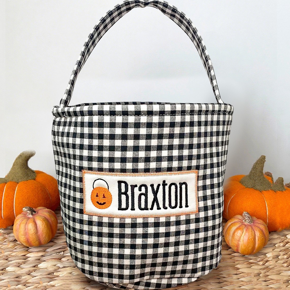 Personalised Embroidered Halloween Bucket Trick or Treat Bag Candy Tote Halloween Gift for Kids