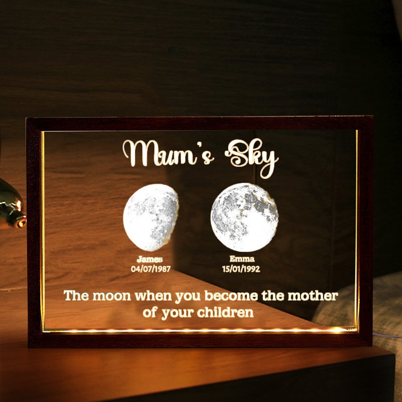 Personalised Mum's Sky Moon Phase Night Light By Date with Kids Names Gifts for Mother's Day Keepsake Gift for Mum