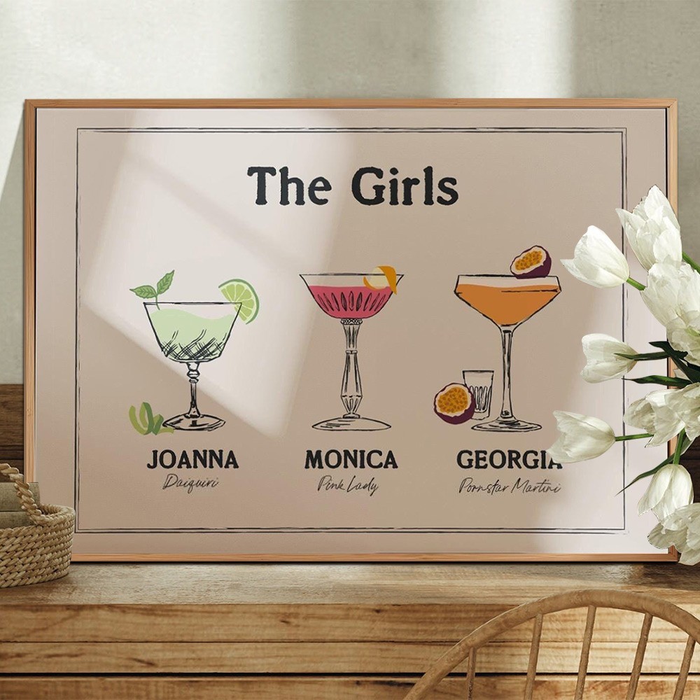 Personalised Roommates Drinks Art Print Frame with Names College Apartment Dorm Art Unique Gifts for Friends